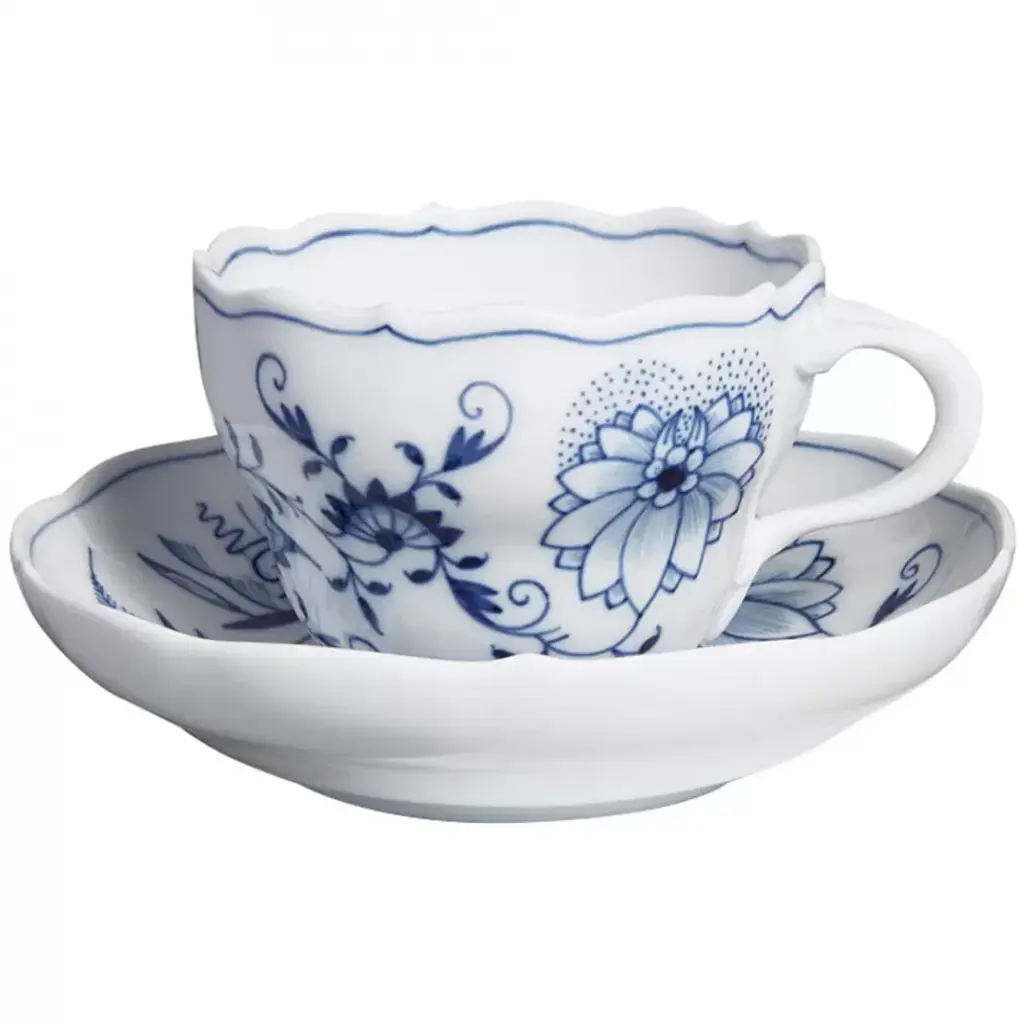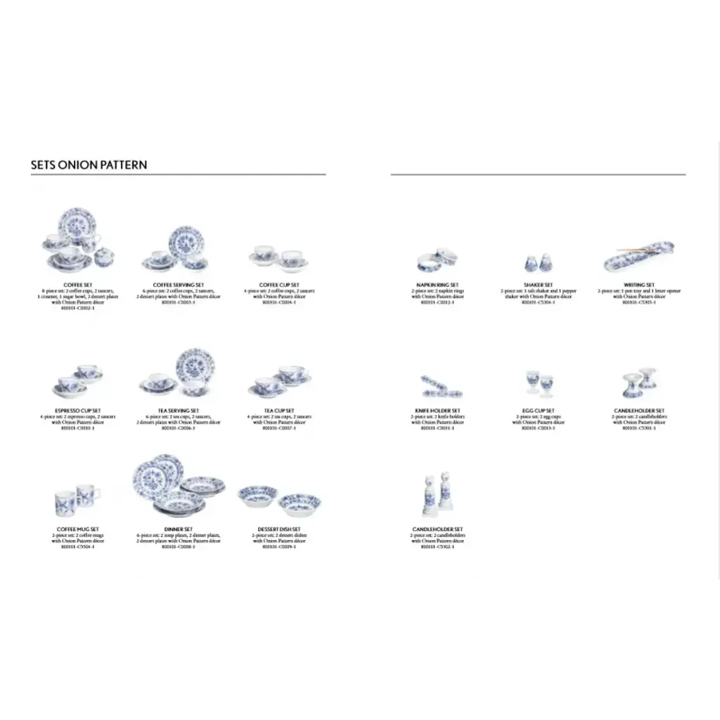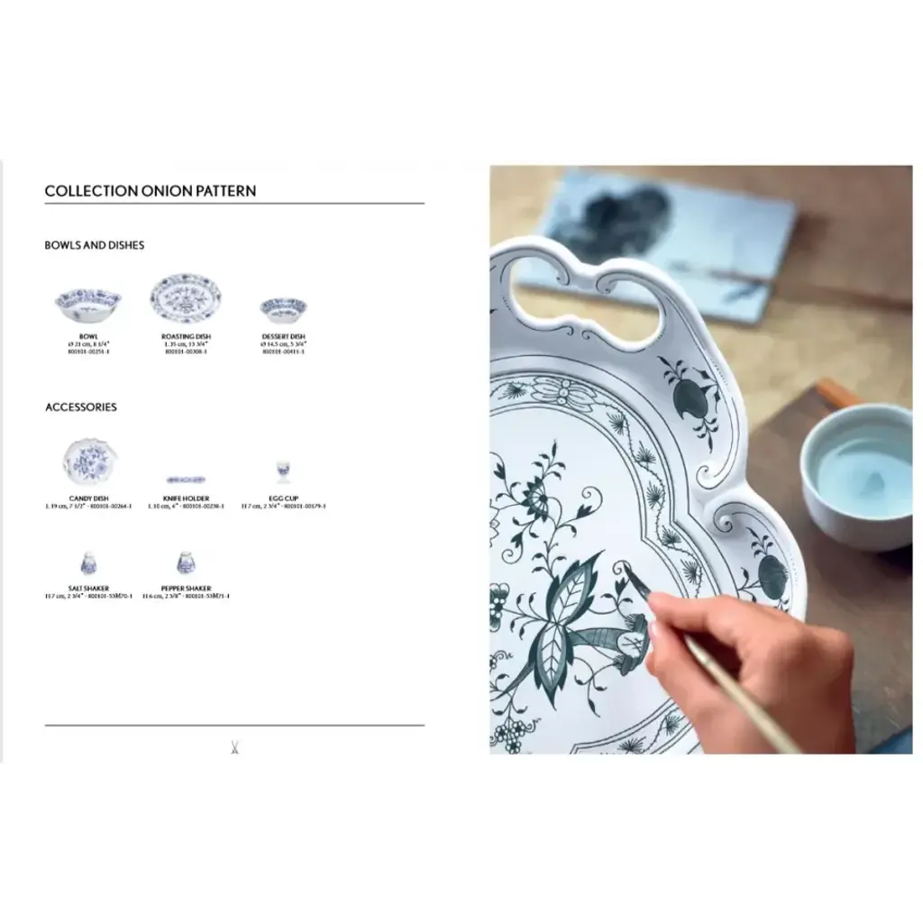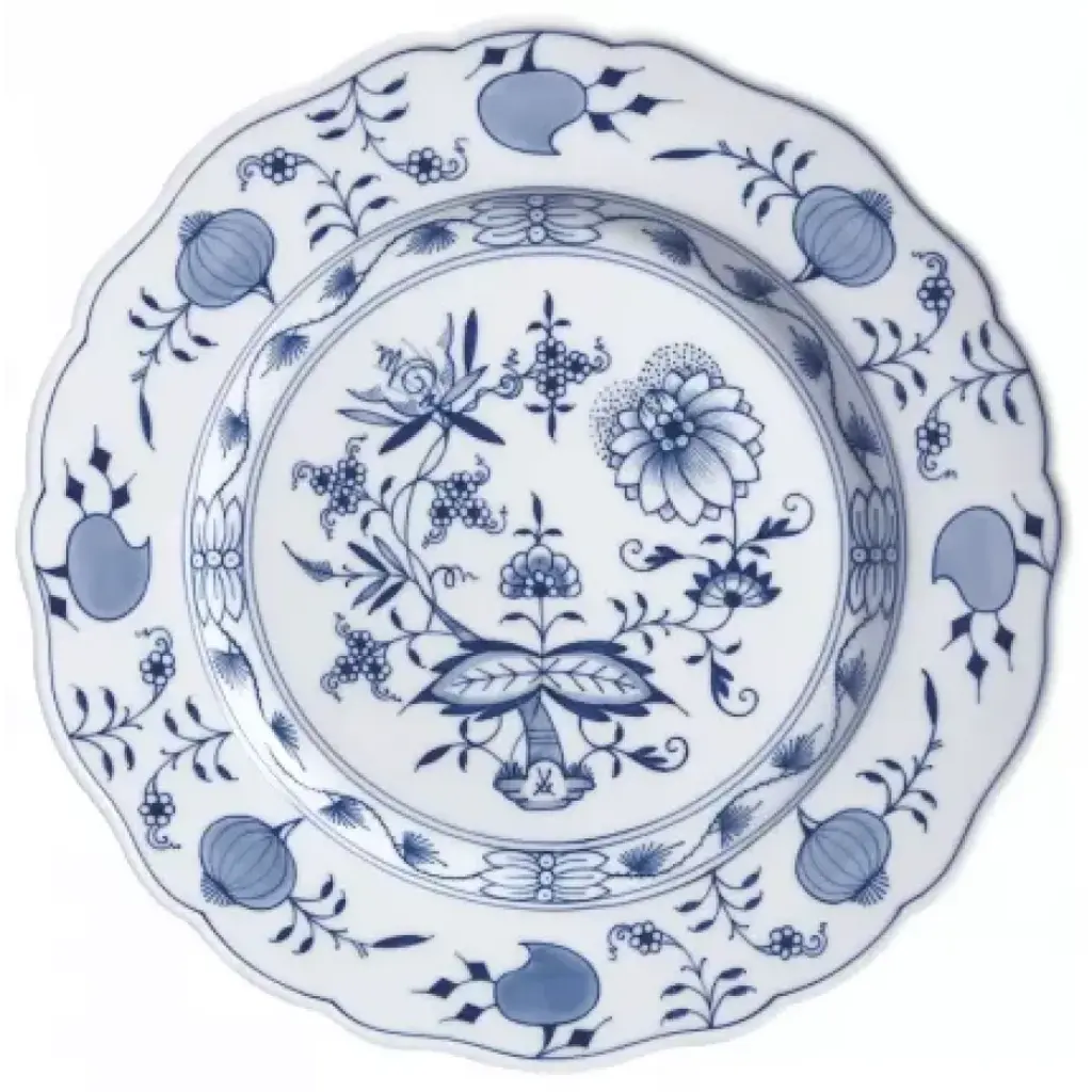 The history of the “Onion Pattern” began with the search of a special blue color to emphasize the unprecedented whiteness of Meissen's porcelain. After numerous tests, they combined cobalt and oxygen to create a blue that was extremely heat-resistant. Thus, in 1722, the new paint made it possible to apply Meissen’s trademark, the Crossed Swords, in cobalt blue under the glaze for the first time. This technique protected the trademark and made it impossible to duplicate. Inspired by East Asian patterns, which were predominantly blue at the time, Meissen’s radiant blue “Onion Pattern” was created from 1731 and would go on to become famous around the world. The “onions” in the pattern are not actually onions, but rather peaches and melons on the rims, and bamboo stalks and delicate chrysanthemum blossoms in the center. In 2004, Onion was modernized to include a chrysanthemum winding along the plate's rim. The vined bamboo shoot with delicate blossoms, along with the original pattern's double leaft have remained, while the fruits have disappeared altogether. This new pattern is a lighter, breezier offshoot of the 1731 original, allowing the porcelain to shine. As the oldest trademark in Europe, the Crossed Swords from the coat of arms of the Electorate of Saxony have represented the exceptional quality of Meissen porcelain since 1722. To this day, the trademark is applied by hand to every piece of Meissen porcelain in the manufactory’s own cobalt blue by Meissen’s “swordsmen” – painters specialising in the Crossed Swords. The Crossed Swords have been a component of the onion pattern since 1888. Set in the foot of the bamboo stalks, the swords attest to the piece’s authenticity and guarantee Meissen’s exceptional porcelain quality and craftsmanship Founded in 1710 by King Augustus the Strong, Meissen is the oldest porcelain manufactory in Europe and enjoys worldwide acclaim for its exceptional craftsmanship. Meissen and its crossed swords insignia are synonymous with the highest quality porcelain; every Meissen piece is entirely crafted in-house in the state of Saxony (Germany).