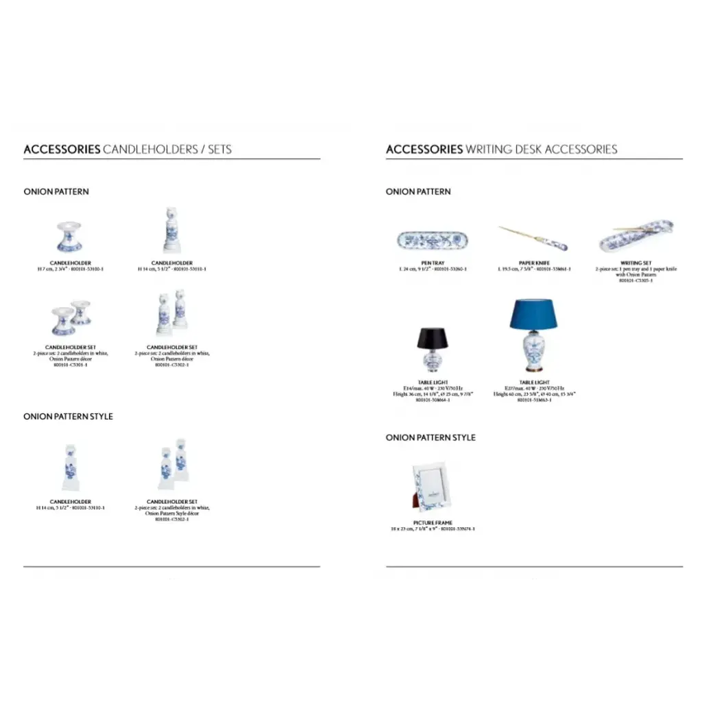 The history of the “Onion Pattern” began with the search of a special blue color to emphasize the unprecedented whiteness of Meissen's porcelain. After numerous tests, they combined cobalt and oxygen to create a blue that was extremely heat-resistant. Thus, in 1722, the new paint made it possible to apply Meissen’s trademark, the Crossed Swords, in cobalt blue under the glaze for the first time. This technique protected the trademark and made it impossible to duplicate. Inspired by East Asian patterns, which were predominantly blue at the time, Meissen’s radiant blue “Onion Pattern” was created from 1731 and would go on to become famous around the world. The “onions” in the pattern are not actually onions, but rather peaches and melons on the rims, and bamboo stalks and delicate chrysanthemum blossoms in the center. In 2004, Onion was modernized to include a chrysanthemum winding along the plate's rim. The vined bamboo shoot with delicate blossoms, along with the original pattern's double leaft have remained, while the fruits have disappeared altogether. This new pattern is a lighter, breezier offshoot of the 1731 original, allowing the porcelain to shine. As the oldest trademark in Europe, the Crossed Swords from the coat of arms of the Electorate of Saxony have represented the exceptional quality of Meissen porcelain since 1722. To this day, the trademark is applied by hand to every piece of Meissen porcelain in the manufactory’s own cobalt blue by Meissen’s “swordsmen” – painters specialising in the Crossed Swords. The Crossed Swords have been a component of the onion pattern since 1888. Set in the foot of the bamboo stalks, the swords attest to the piece’s authenticity and guarantee Meissen’s exceptional porcelain quality and craftsmanship Founded in 1710 by King Augustus the Strong, Meissen is the oldest porcelain manufactory in Europe and enjoys worldwide acclaim for its exceptional craftsmanship. Meissen and its crossed swords insignia are synonymous with the highest quality porcelain; every Meissen piece is entirely crafted in-house in the state of Saxony (Germany).