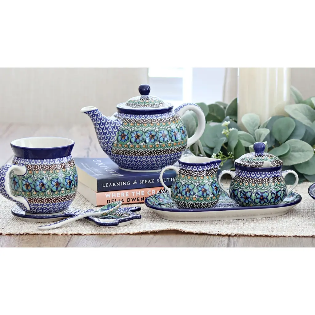Hand painted sugar spoons are a sweet way to stir in your favorite sweetener. Pair it with our cream and sugar sets or coffee mugs to complete your morning. 5.25 inches long. The Art of Polish Pottery, as we know it today, started as local folk art centuries ago in the German province of Silesia. The first known pieces of “Bunzlauer” stoneware dating back to the 16th century were crafted by hand and decorated with a folk art stamping technique using potatoes. Original designs were inspired by the peacock feather using the colors of cobalt blue, sage green and ferrous red. These designs and colors are still the inspiration for modern day patterns.Today, skilled Polish artists still individually handcraft and hand decorate each piece using small sponges to stamp each pattern and color. After the process of mixing ingredients, molding the pottery, applying the decorations and glaze, the pottery is twice fired. This process makes the pottery extremely durable, it will not crack or chip easily, and it is perfect for use in the microwave, dishwasher, oven and freezer. Along with our pottery, we have sourced a range of absolutely beautiful hand blown glassware from Poland. It is the perfect addition to your Polish Pottery Collection!
