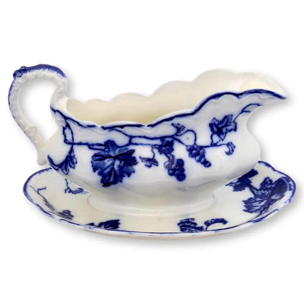 Blue Rose Polish Pottery Blue Violet Gravy Boat & Plate