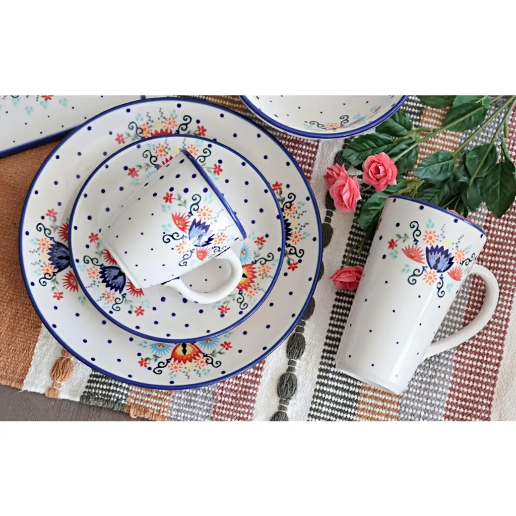 Start your morning with a touch of artistry using our tall coffee mug, carefully handmade and hand-painted in Poland by skilled artisans who carry on a centuries-old tradition of craftsmanship. Measuring 5.75 inches high and holding a generous 14 oz, this mug is ideal for coffee lovers who prefer a bigger pour—whether it’s your first energizing cup of the day or a cozy evening tea. The tall, slender silhouette is thoughtfully designed for comfort, with a sturdy handle that fits easily in your hand and helps keep your drink warmer for longer. Each mug is individually hand-painted in vibrant, traditional patterns, meaning no two are ever exactly alike—each one is a one-of-a-kind piece of functional art. Made from high-quality, durable stoneware, these mugs are built to last and safe for the microwave, dishwasher, and freezer, making them as practical as they are beautiful. Perfect for daily use or as a standout piece in your collection, this tall mug combines elegance, tradition, and everyday convenience in a way that will make every sip feel special.