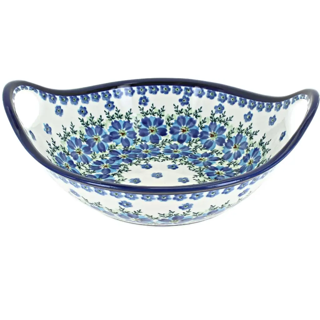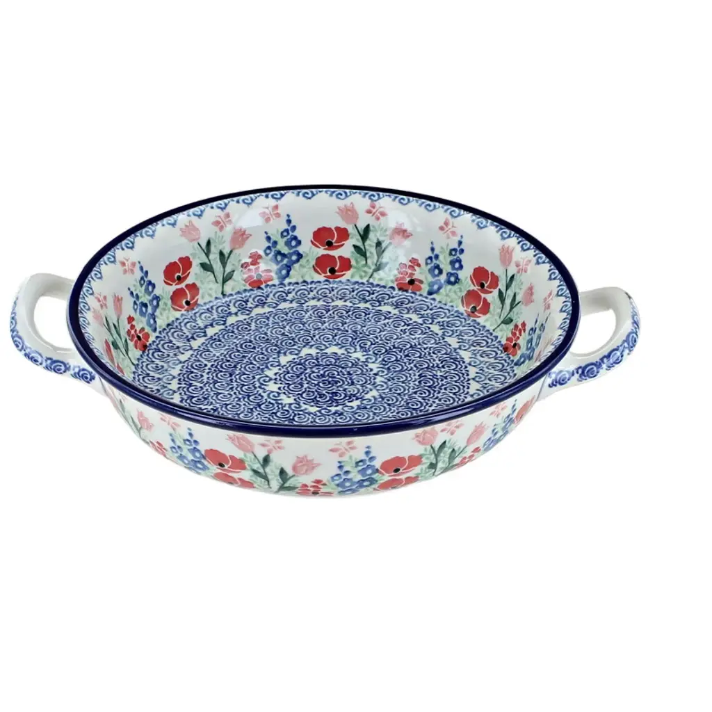 Designed with a unique shape that helps reduce spills and mess, this handcrafted Polish pottery soup plate is perfect for enjoying soups, pasta, stews, or hearty salads. Measuring 9.25 inches in diameter and 1.5 inches deep, it offers generous capacity and a practical design that elevates everyday dining. Each plate is carefully shaped and painted by hand by skilled artisans in Poland, ensuring no two pieces are exactly alike and making every plate a work of functional art. High-fired at extremely high temperatures, the ceramic achieves outstanding durability, resisting chipping and wear even with daily use. The double-glazed surface preserves the brilliant colors and intricate patterns, while also creating a smooth, scratch-resistant finish that is easy to clean. Safe for use in the microwave, dishwasher, freezer, and oven, this plate balances traditional craftsmanship with modern convenience. Whether added to a dinnerware set, used as a serving piece, or given as a thoughtful gift, this soup plate brings both artistry and functionality to the table and is sure to become a favorite for years to come.
