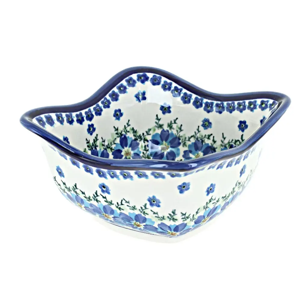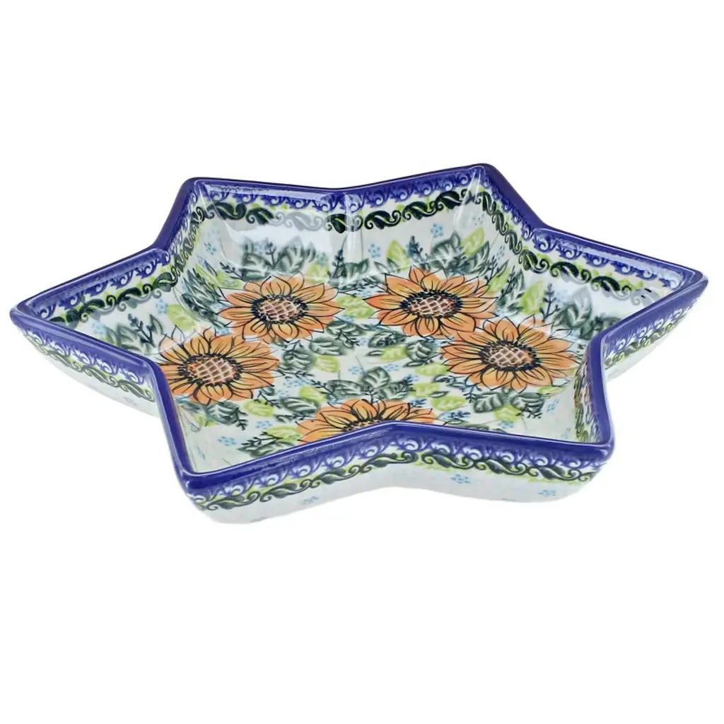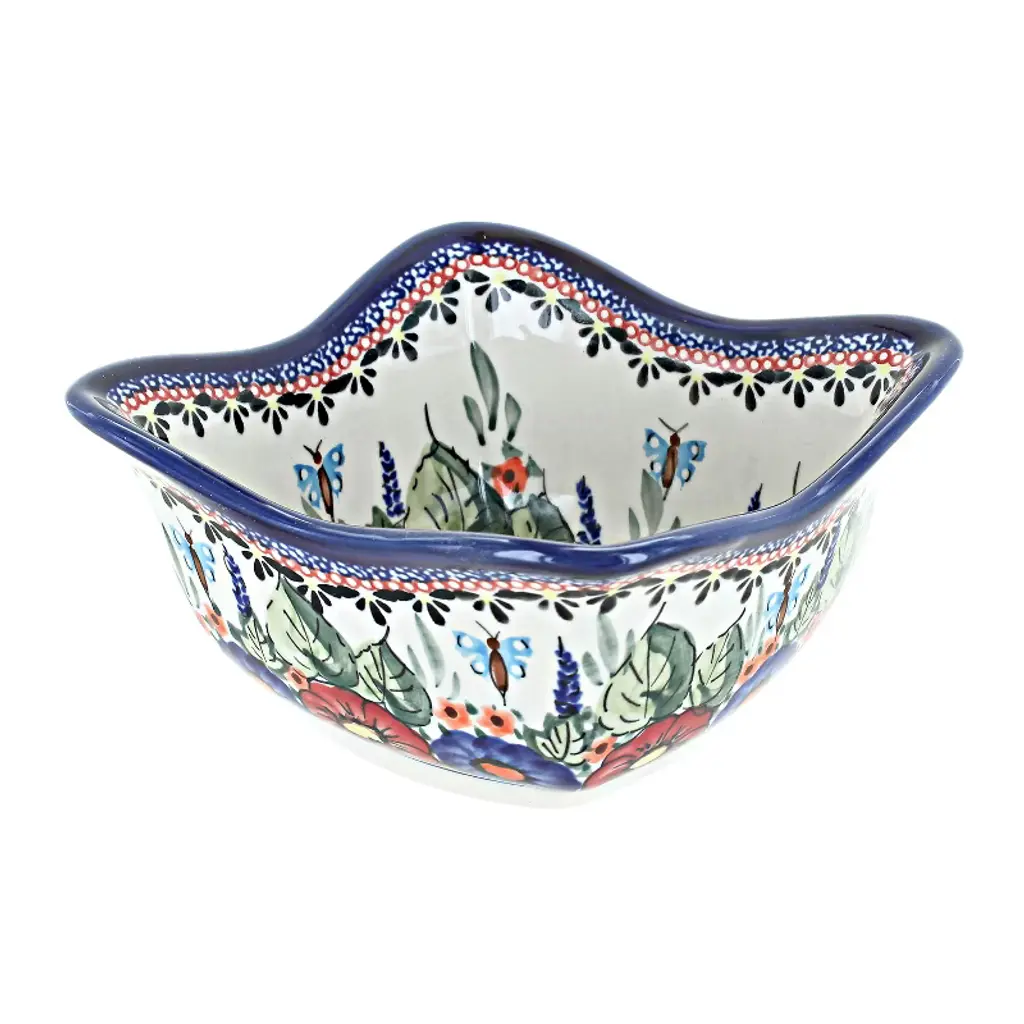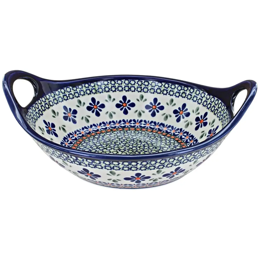 8.75" diameter - great for soup, pasta or a salad! The Art of Polish Pottery, as we know it today, started as local folk art centuries ago in the German province of Silesia. The first known pieces of “Bunzlauer” stoneware dating back to the 16th century were crafted by hand and decorated with a folk art stamping technique using potatoes. Original designs were inspired by the peacock feather using the colors of cobalt blue, sage green and ferrous red. These designs and colors are still the inspiration for modern day patterns.Today, skilled Polish artists still individually handcraft and hand decorate each piece using small sponges to stamp each pattern and color. After the process of mixing ingredients, molding the pottery, applying the decorations and glaze, the pottery is twice fired. This process makes the pottery extremely durable, it will not crack or chip easily, and it is perfect for use in the microwave, dishwasher, oven and freezer. Along with our pottery, we have sourced a range of absolutely beautiful hand blown glassware from Poland. It is the perfect addition to your Polish Pottery Collection!