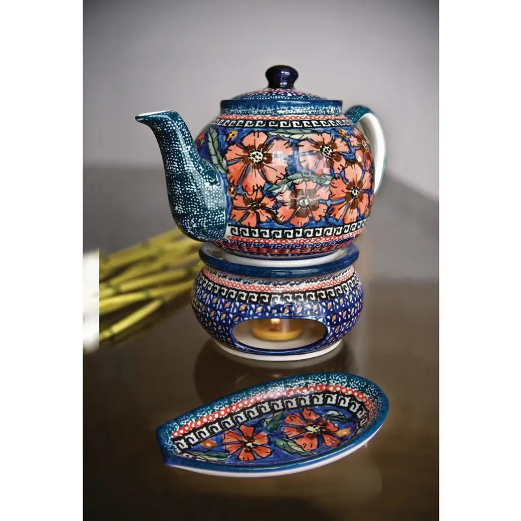 Blue Rose Polish Pottery Jungle Flower Medium Teapot