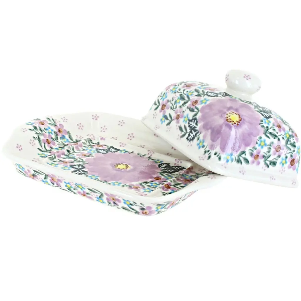 Blue Rose Polish Pottery Lilac Garden Square Butter Dish