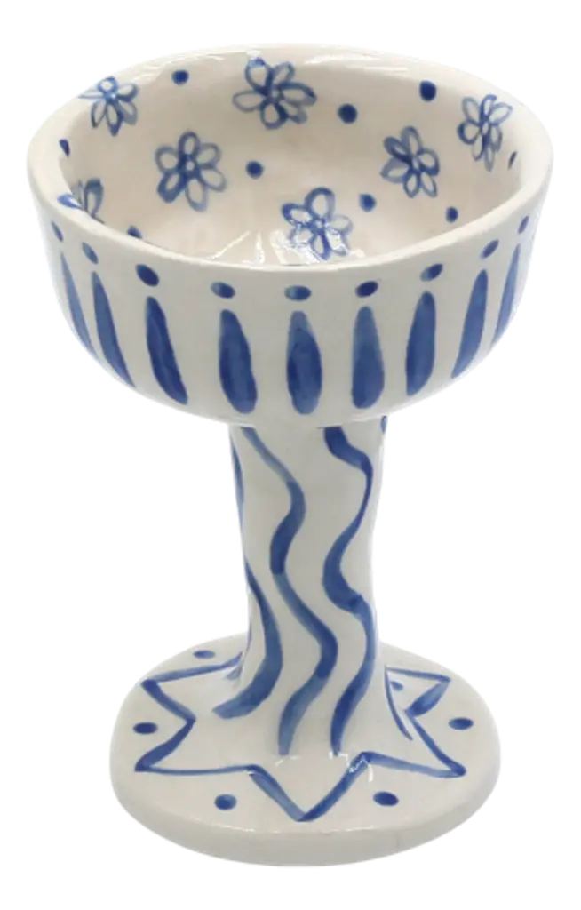 A single egg cup - mix and match to make a set! 2" wide x 2.25" high! The Art of Polish Pottery, as we know it today, started as local folk art centuries ago in the German province of Silesia. The first known pieces of “Bunzlauer” stoneware dating back to the 16th century were crafted by hand and decorated with a folk art stamping technique using potatoes. Original designs were inspired by the peacock feather using the colors of cobalt blue, sage green and ferrous red. These designs and colors are still the inspiration for modern day patterns.Today, skilled Polish artists still individually handcraft and hand decorate each piece using small sponges to stamp each pattern and color. After the process of mixing ingredients, molding the pottery, applying the decorations and glaze, the pottery is twice fired. This process makes the pottery extremely durable, it will not crack or chip easily, and it is perfect for use in the microwave, dishwasher, oven and freezer. Along with our pottery, we have sourced a range of absolutely beautiful hand blown glassware from Poland. It is the perfect addition to your Polish Pottery Collection!