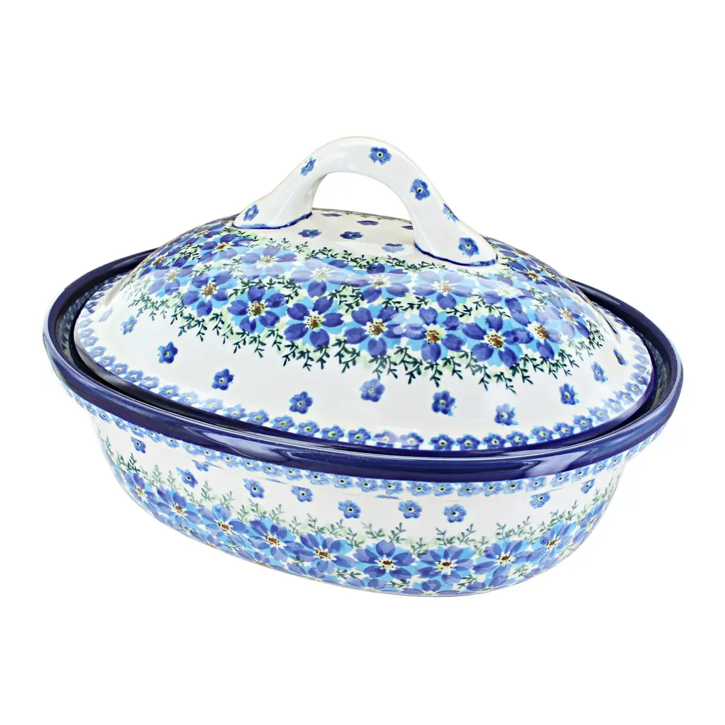 Serving sets meet every need and occasion with three different sizes. From serving food to creating a table center piece, you’ll have pieces to use for years to come. Large; 12-inch diameter x 3 inches deep. Medium; 10-inch diameter, 2.75 inches deep. Small; 8.5-inch diameter, 2.25 inches deep. The Art of Polish Pottery, as we know it today, started as local folk art centuries ago in the German province of Silesia. The first known pieces of “Bunzlauer” stoneware dating back to the 16th century were crafted by hand and decorated with a folk art stamping technique using potatoes. Original designs were inspired by the peacock feather using the colors of cobalt blue, sage green and ferrous red. These designs and colors are still the inspiration for modern day patterns.Today, skilled Polish artists still individually handcraft and hand decorate each piece using small sponges to stamp each pattern and color. After the process of mixing ingredients, molding the pottery, applying the decorations and glaze, the pottery is twice fired. This process makes the pottery extremely durable, it will not crack or chip easily, and it is perfect for use in the microwave, dishwasher, oven and freezer. Along with our pottery, we have sourced a range of absolutely beautiful hand blown glassware from Poland. It is the perfect addition to your Polish Pottery Collection!