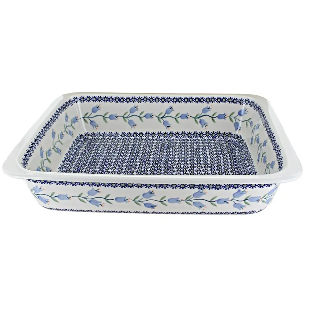 This large rectangular serving platter is a timeless addition to any table, designed for both everyday use and entertaining. Measuring 13.25" x 9.5", it offers plenty of surface area for presenting main courses, appetizers, or desserts, while its flat, elegant shape makes arranging foods simple and stylish. Perfect for roasted meats, charcuterie, pastries, or side dishes, it’s a versatile piece that can serve as both a functional platter and a striking centerpiece. Handmade and hand-painted in Poland, each platter features vibrant, detailed patterns that make every piece unique and filled with character. Crafted from durable, high-fired stoneware, it is celebrated for its strength, heat retention, and resistance to chips and scratches, ensuring years of dependable use. Safe for the oven, microwave, dishwasher, and freezer, this serving platter combines heirloom-quality artistry with modern practicality. Whether used daily or for festive gatherings, it adds beauty, tradition, and functionality to your table.