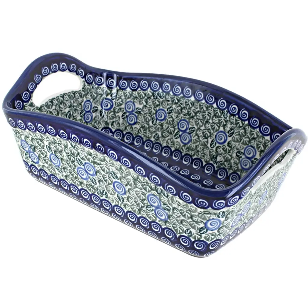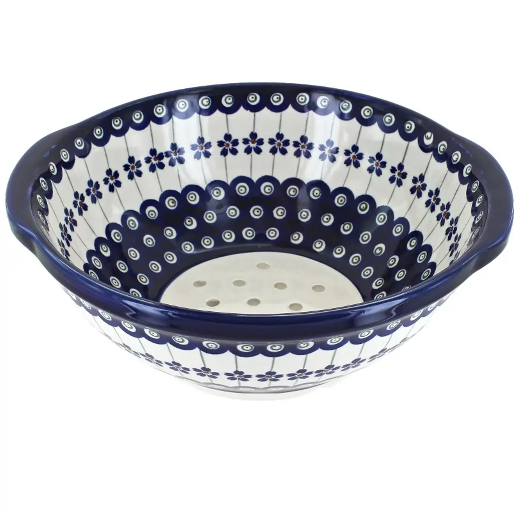 Blue Rose Polish Pottery Peacock Serving Bowl Set With Handles
