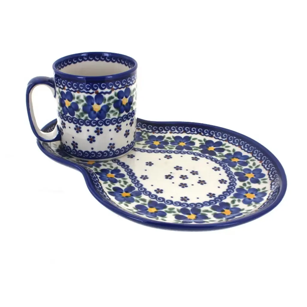 Start your mornings in style with this breakfast plate and matching mug set, thoughtfully designed for both beauty and convenience. The 11.5-inch by 7.75-inch plate features a special resting place for the mug, while leaving plenty of space for toast, fruit, or pastries. The 10 oz mug is perfectly sized for coffee, tea, or cocoa, and together the set creates a charming and functional breakfast duo. Each piece is handmade and hand-painted in Poland by skilled artisans, showcasing vibrant patterns and timeless craftsmanship that make every set unique. Crafted from durable stoneware, both the plate and mug are safe for the microwave, dishwasher, and freezer, making them as practical as they are beautiful. Whether enjoyed as part of your daily routine, used for leisurely weekend brunches, or given as a thoughtful gift, this set blends authentic artistry, tradition, and everyday usability in one perfect pairing.