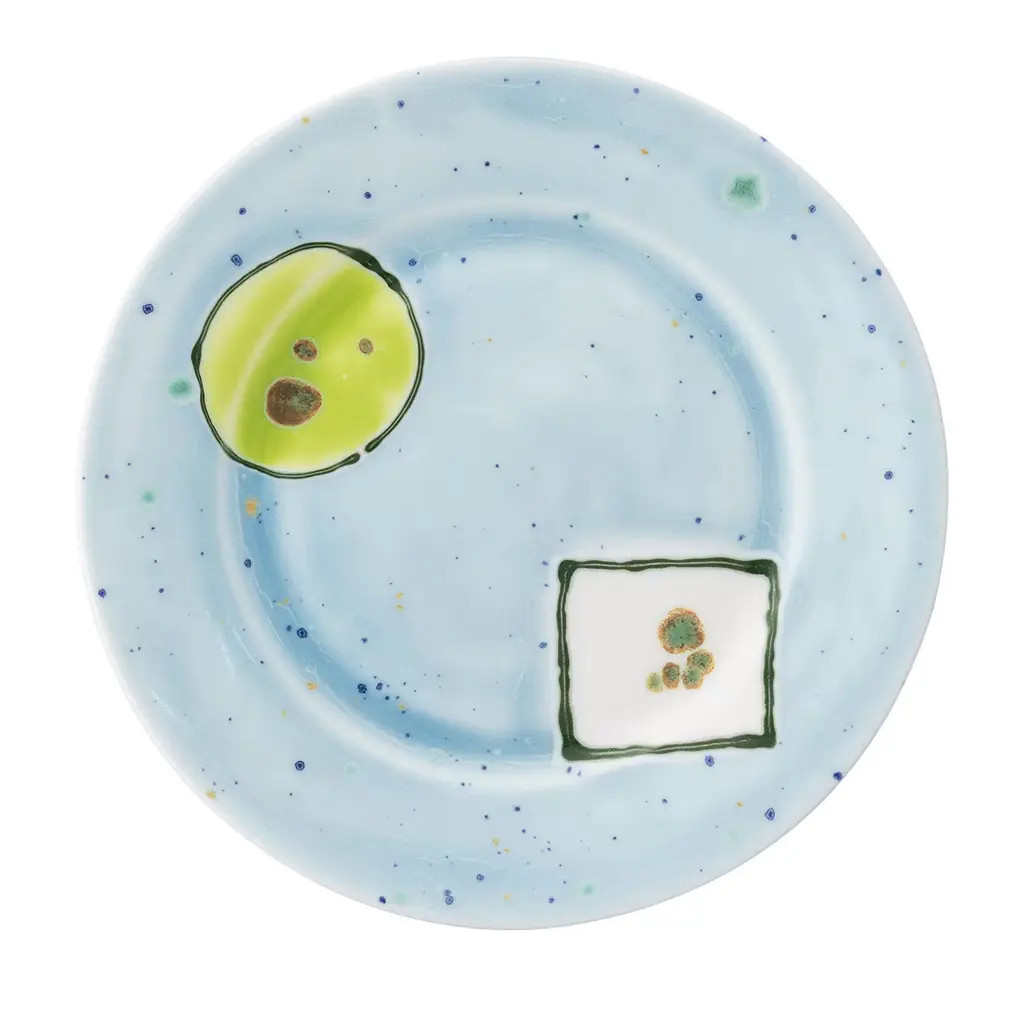 Part of the Corallo Collection, first presented at Milan Design Week 2018, this serving plate is a superb addition to a modern home, where it can be used to serve food on the table or to permanently display collectibles in other rooms in the house. It is crafted by hand in fine porcelain and adorned with a stylized interpretation of marine life, with corals, pink sand, and other colorful creatures dotting the light blue of the background. This piece can be combined with the other serving plates in the series for a cohesive look. Dishwasher safe.