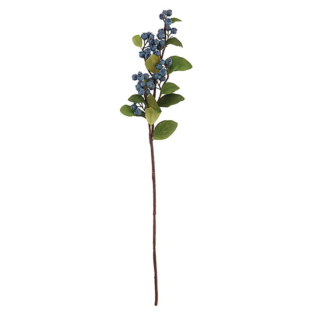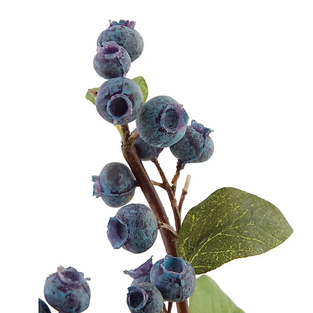 Blueberries symbolize good health and living life to the fullest. Our Blueberry Stems are deliciously lifelike with clusters of big plump berries and soft realistic leaves. Tuck these long slender stems into your seasonal greenery for a luscious pop of harvest color. Blueberry Stem features:
