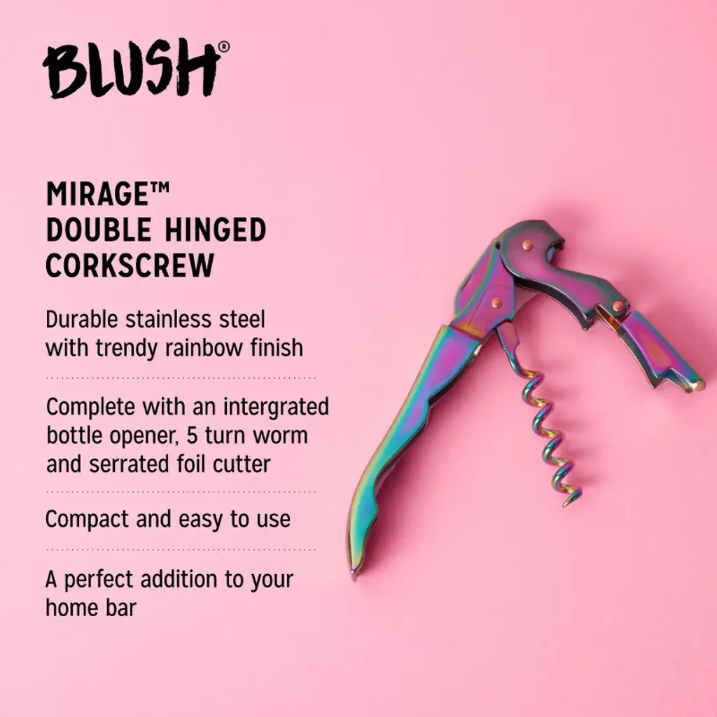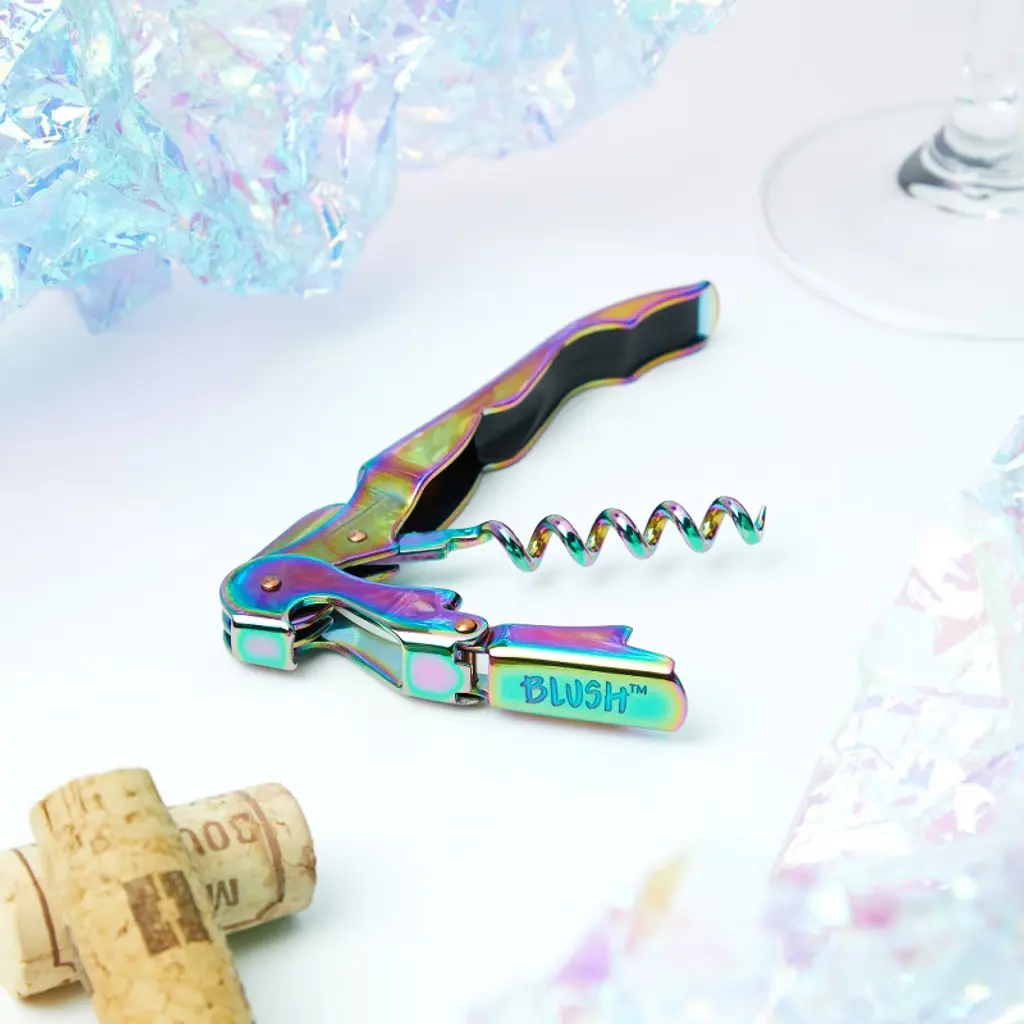 Blush Mirage Double Hinged Corkscrew, Cute Iridescent Wine Bottle Opener And Foil Cutter, Stainless Steel Bar Accessories, 4.75 Inches Long, Set Of 1