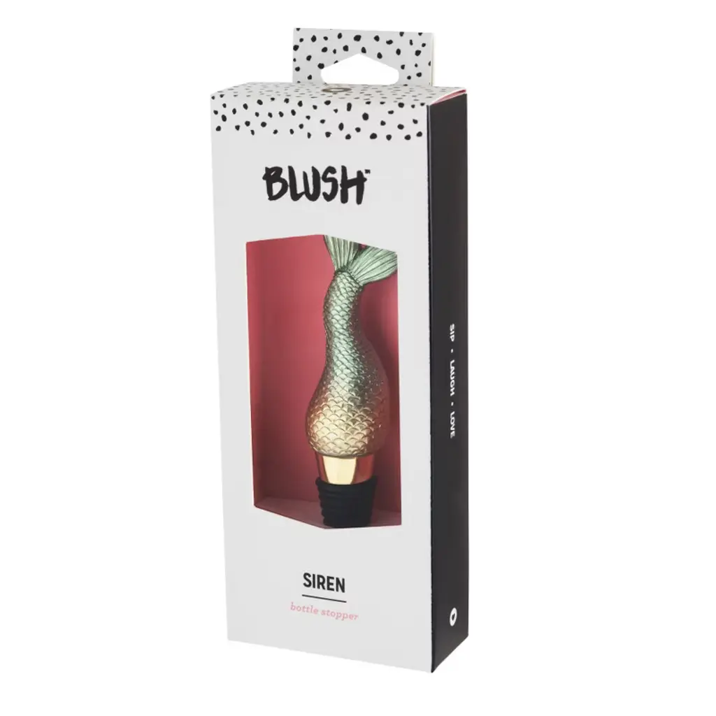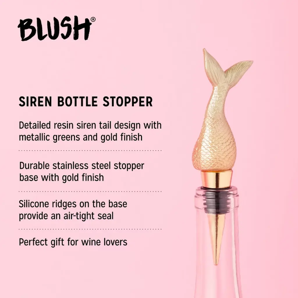 Blush Siren Bottle Stopper, Mermaid Tail Wine Bottle Stopper, Fits Standard Wine Bottles, Wine Preserver, Green, Set Of 1, Gold Finish