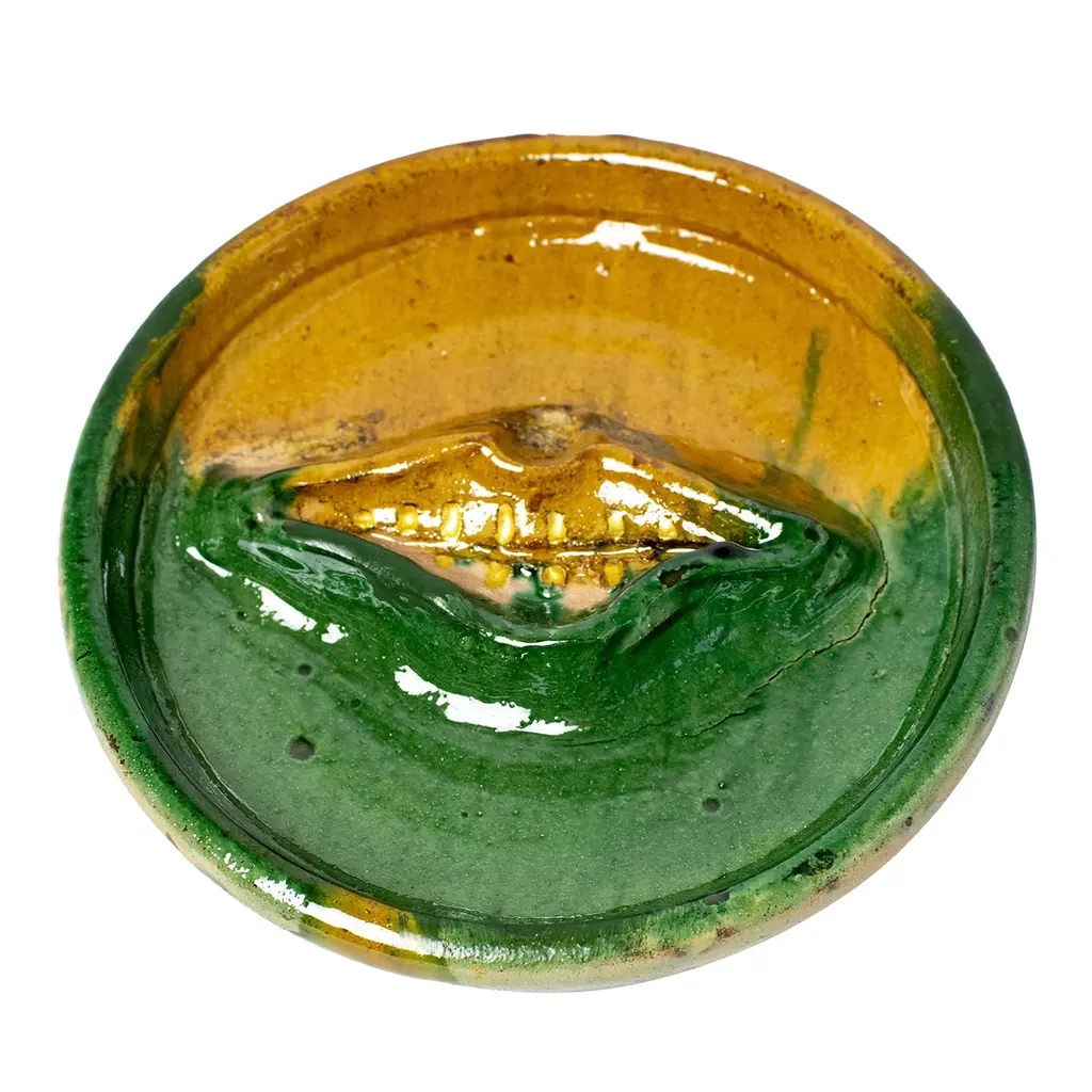 This eye-catching, whimsical artwork by Signora Luna emerges as a captivating fusion of ancient ceramic artistry and contemporary innovation. Inspired by the region's iconic apotropaic masks, this piece extrapolates intricate details to create visionary designs blending historic roots with modern sensibilities. Handcrafted by skilled artisans using ancient Calabrian techniques, this ceramic artwork is elevated through a meticulous gilding process with delicate gold leaf.