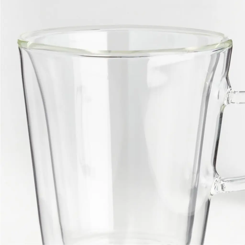 Hand-blown by skilled artisans, this clear glass canteen mug creates a delightful optical illusionyour cappuccino, affogato or Mint Julep appears to float within. The double-walled cup-within-a-cup design helps keep your drinks at the ideal temperature and prevents condensation. Finished with a slender handle, the elegant-yet-durable borosilicate glass mug stands up to heat and cleans easily in the dishwasher.