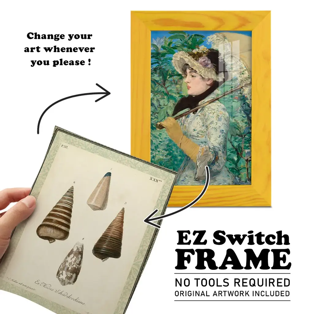Bookplate Shells VI -EZ SWITCH Framed Print w/glass-Cherry Red A delightful, framed print. Featuring a solid wood frame with real wood glass. This premium print is giclee quality. In addition, every frame features a removable back and table top stand. This allows you to change your art in the future or to just stand the art on a table for a new look. We are sure you'll enjoy our new series of EZ SWITCH Framed Art. Solid Wood Frame Real Glass Removable / Replaceable Art Built in Tabletop Stand Sizes range from 4x6 up to 12x15 - buy just one or pair them up as sets as you see fit.