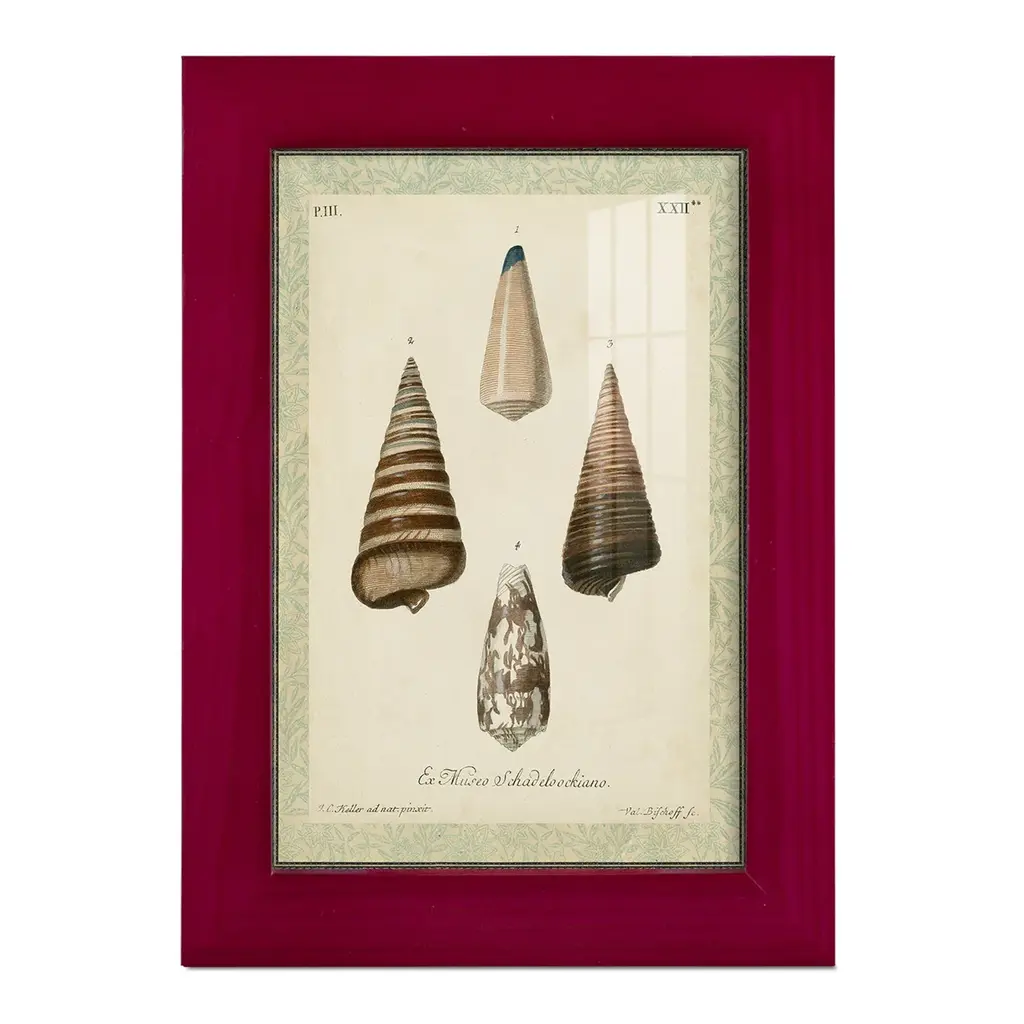 Bookplate Shells Vi -Framed Print W/glass-Cherry Red - 4X6 - Maple