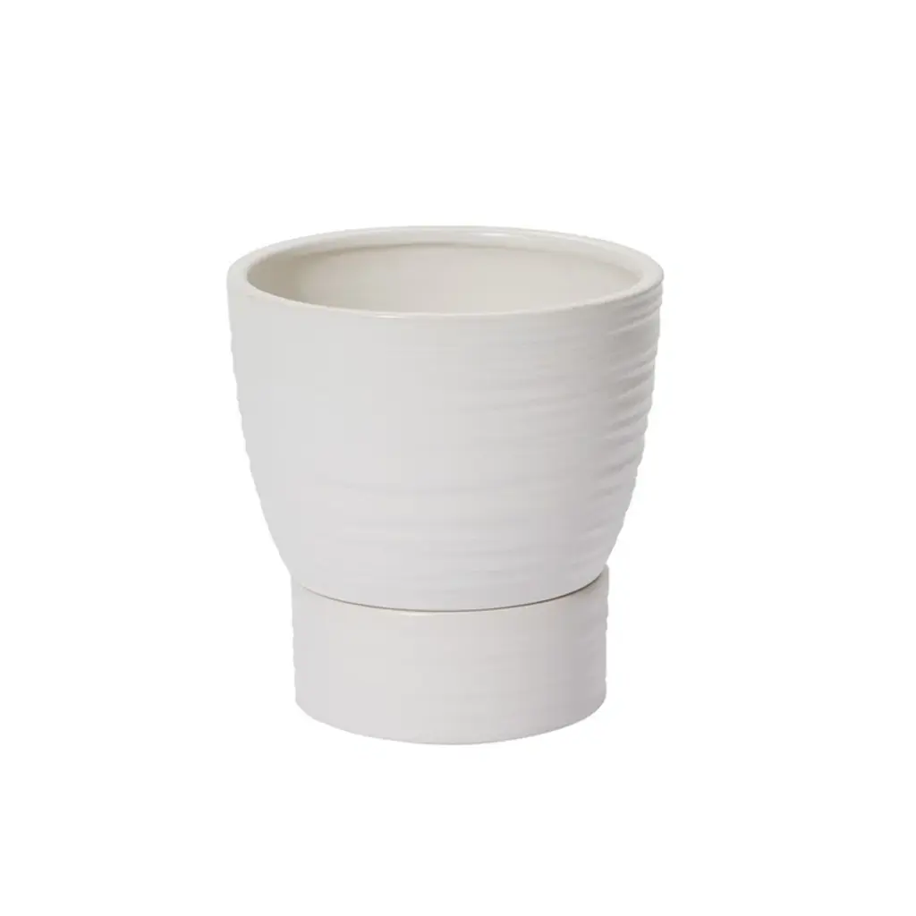Border Concepts' Small Indoor Ceramic Pots are developed for consumers with highest regard for design trend, function and quality. It features a simple modern design in multiple sizes and colors. Fill this beautiful gray planter with houseplants, herbs and succulents to enhance your home or office. The drainage hole ensures proper watering and the attached saucer collects excess water to protect indoor surfaces.