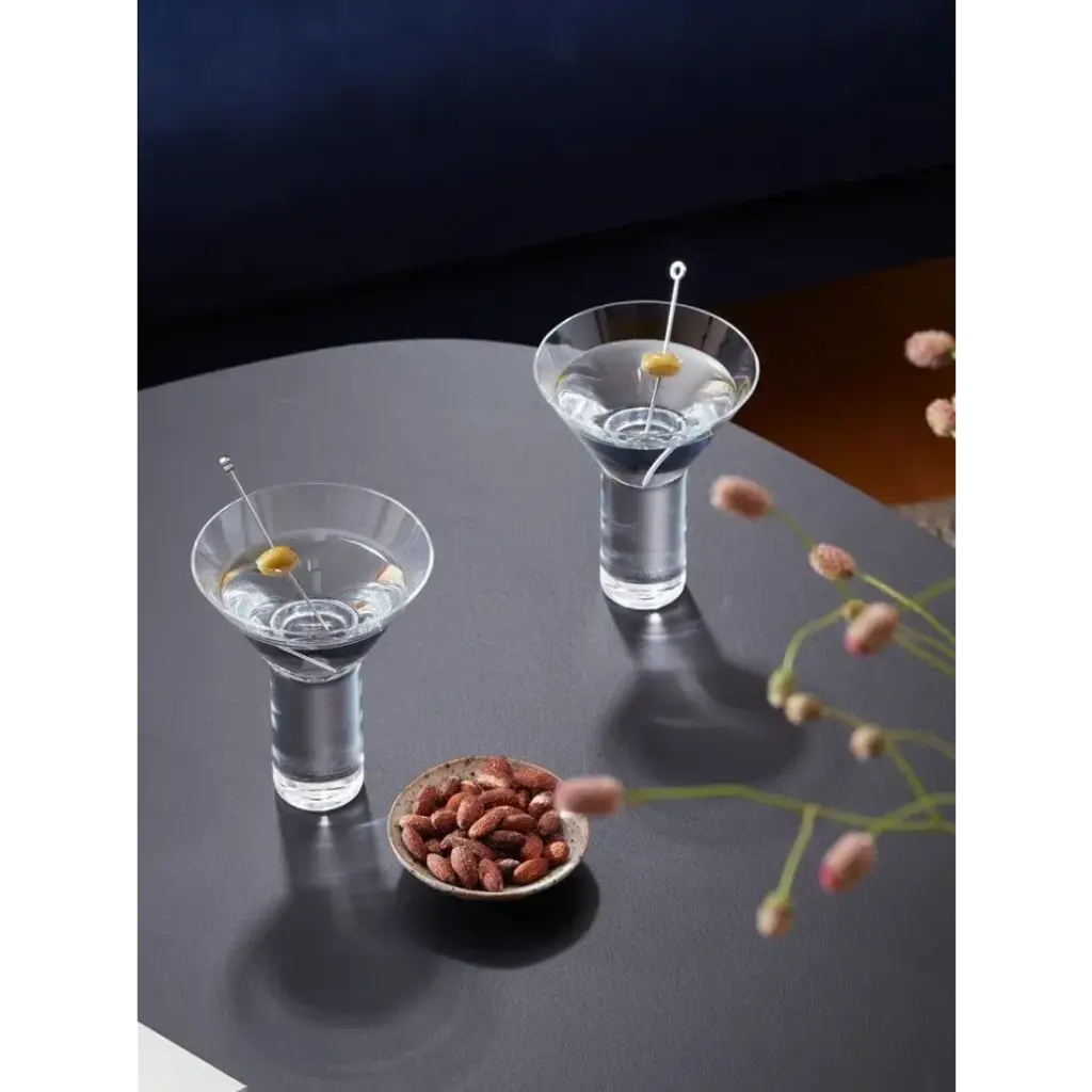 A set of two mouth-blown cocktail glasses, inspired by modern shapes and clean lines. The timeless profiles and classic forms are designed to endure, to add intrinsic value and ensure use year after year. Mouth-blown glass Fine walls Heavy base Cylindrical form Boxed in sets of 2