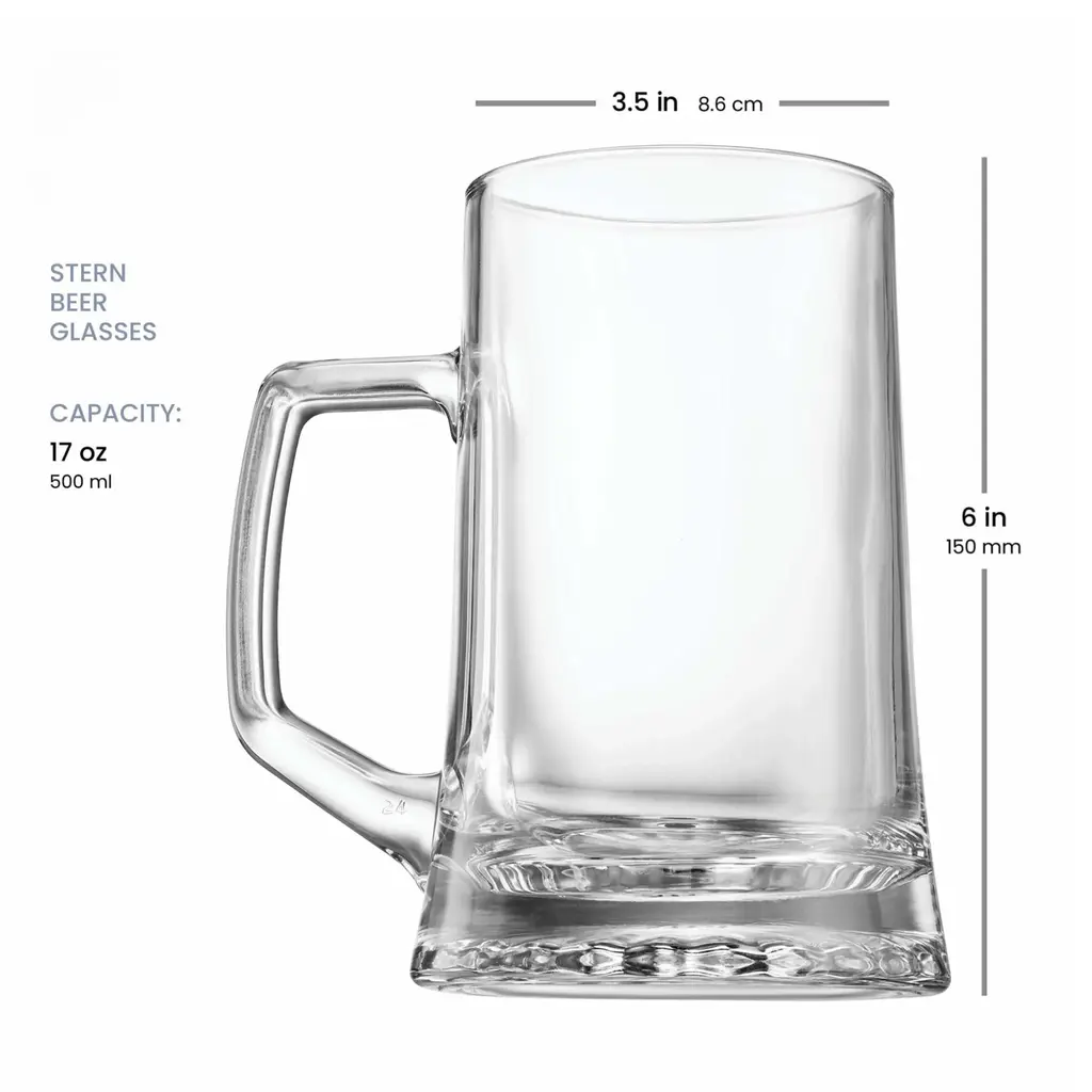 Bormioli Rocco Stern Large Beer Mug with Handle - 17 Ounce Glass Steins, Traditional Beer Mug, Perfect Coffee - Tea Glass, Everyday Drinking Glasses, Cocktail Glasses - NewThe Bormioli Rocco Stern Large Beer Mug combines classic design with functionality, featuring a generous 17-ounce capacity and a sturdy handle for easy gripping. This traditional glass stein is not only perfect for enjoying your favorite beers but also versatile enough for coffee, tea, cocktails, and everyday beverages. Made with high-quality glass, it offers both durability and elegance, making it an excellent addition to your glassware collection and suitable for any occasion.FEATURES:COLOR:MATERIAL:WHAT'S IN THE BOX:PACKAGING: Retail Packaging