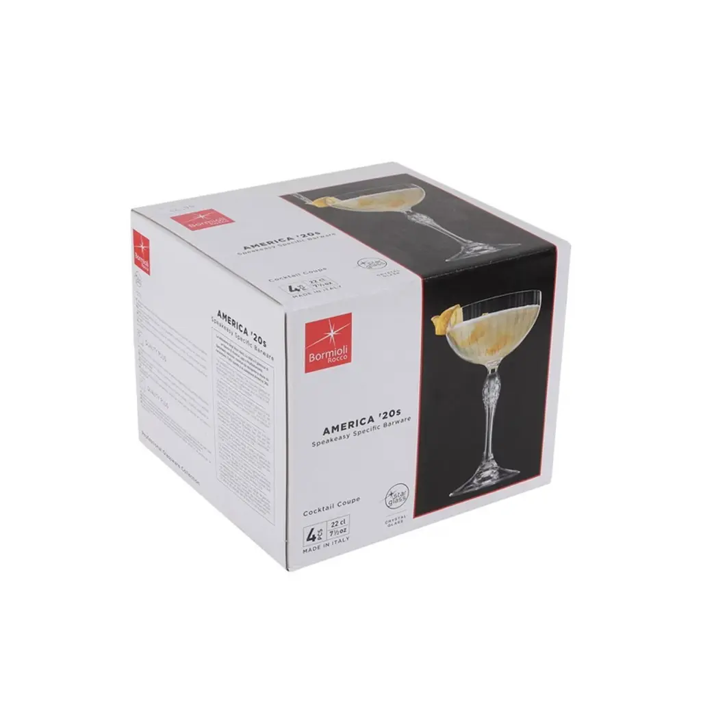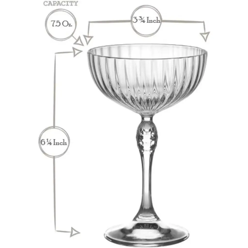 Bormioli Rocco America '20s 7.75 Oz. Cocktail Coupe Glass, 4-piece, Clear