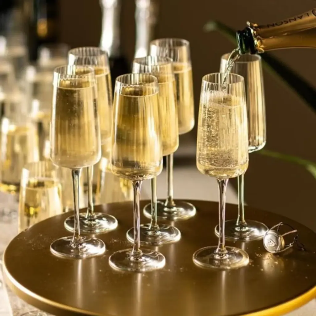 Add a refined touch to your drinkware collection with the Bormioli Rocco Exclusiva Prosecco Glasses, thoughtfully designed for celebrations and sparkling moments. This set of 4 features a sleek ribbed exterior that delivers both modern charm and classic elegance. Each glass holds 8.5 ounces, making them ideal for prosecco, champagne, and other sparkling cocktails. Expertly made from crystal clear Star Glass, these glasses offer exceptional brilliance and transparency that enhances the visual experience of your favorite bubbly. Their stems are fortified with XLT treatment, an innovative reinforcement technology that protects against everyday breakage, abrasions, and twisting, significantly increasing the glasses’ longevity. Whether you're setting the table for a dinner party or adding style to your bar cart, these Italian-made glasses elevate any occasion. Dishwasher safe for convenient cleanup, they combine beauty, function, and resilience in one exceptional package. Bring a touch of European craftsmanship to your next toast or gathering with these standout stemmed prosecco glasses.