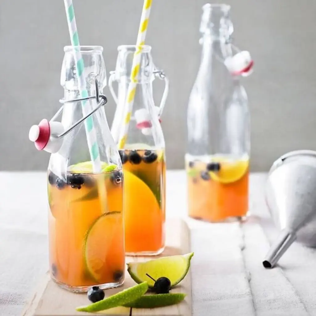 Bormioli Rocco Swing Top Glass Bottle Set - 8.5 oz Kitchen Containers with Airtight Seal, Ideal for Homemade Dressings, Syrups, Infused Oils, Small-Batch Beverages - Glassware for Kitchen - NewStreamline your kitchen creations with the Bormioli Rocco Swing Top Glass Flasks. Each 8.5 oz kitchen container is crafted to support small-batch culinary projects while bringing an elegant, reusable option into your home. Fitted with a swing-top lid featuring a sturdy metal ring and gasket, these drinking vessels deliver an airtight, leakproof seal—ideal for keeping dressings, syrups, and other liquids fresh and spill-free. Whether you’re preparing homemade infused oils, storing herbal extracts, or organizing small amounts of juice or water, these flasks give you the versatility and control you need in the kitchen. Designed for those who value sustainability, each glass flask helps reduce single-use plastics while adding a touch of visual appeal to your pantry or refrigerator. The clear glass construction lets you easily identify contents and monitor freshness. While the glass portion is dishwasher safe, we recommend hand washing the metal clasp and gasket to preserve its seal and integrity. From DIY kitchen projects to gifting handcrafted beverages, this Botttle delivers practical function in a sleek, space-efficient form.FEATURES:COLOR:MATERIAL:WHAT'S IN THE BOX:PACKAGING: Retail Packaging