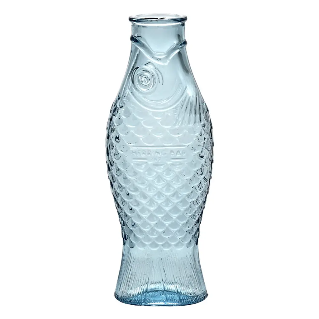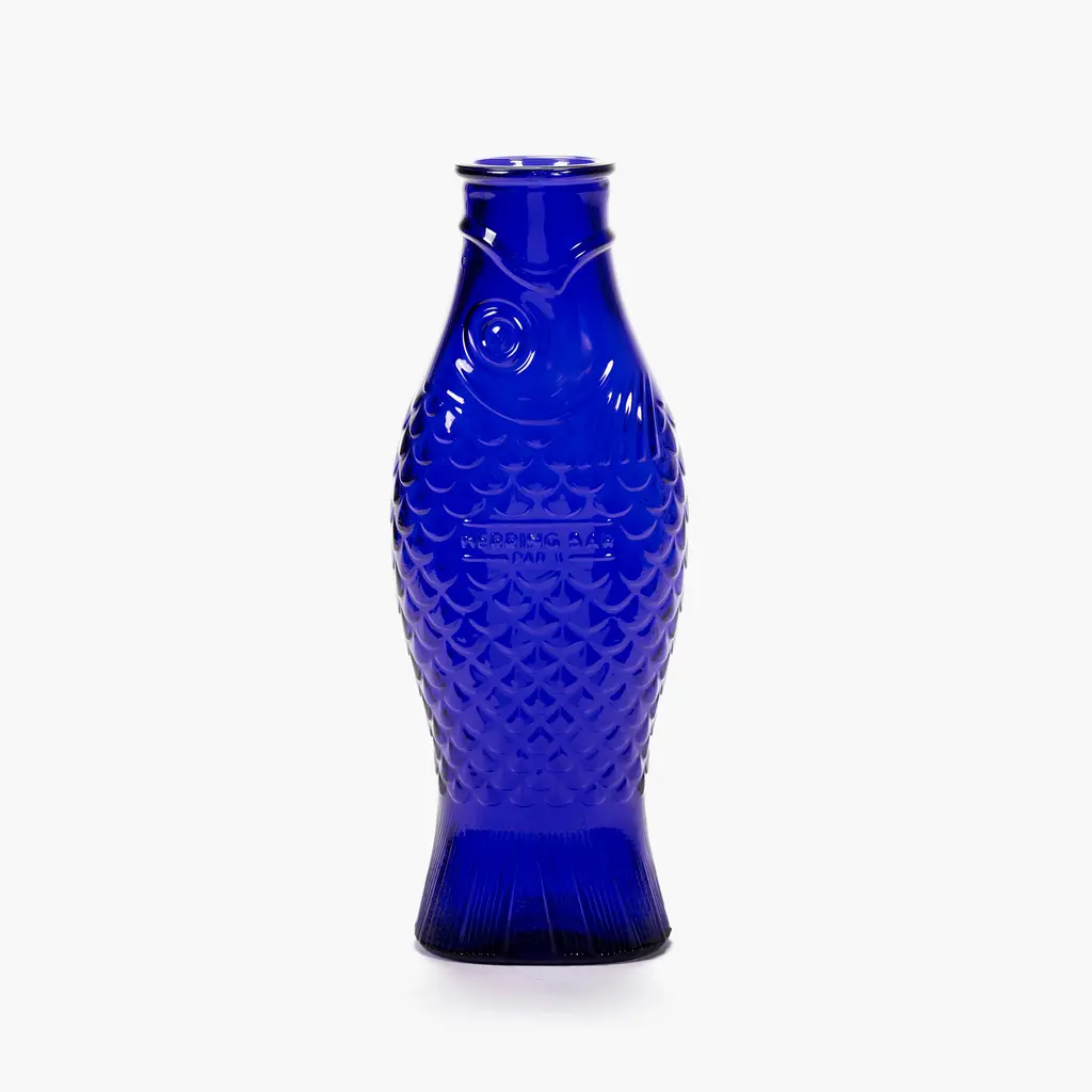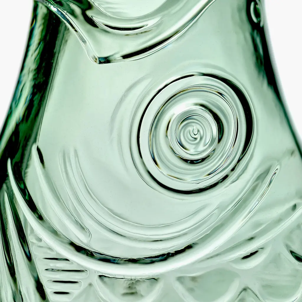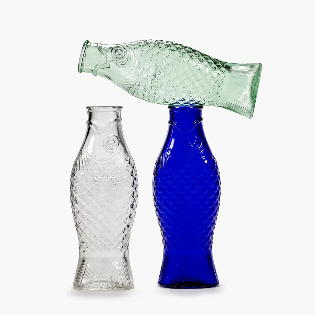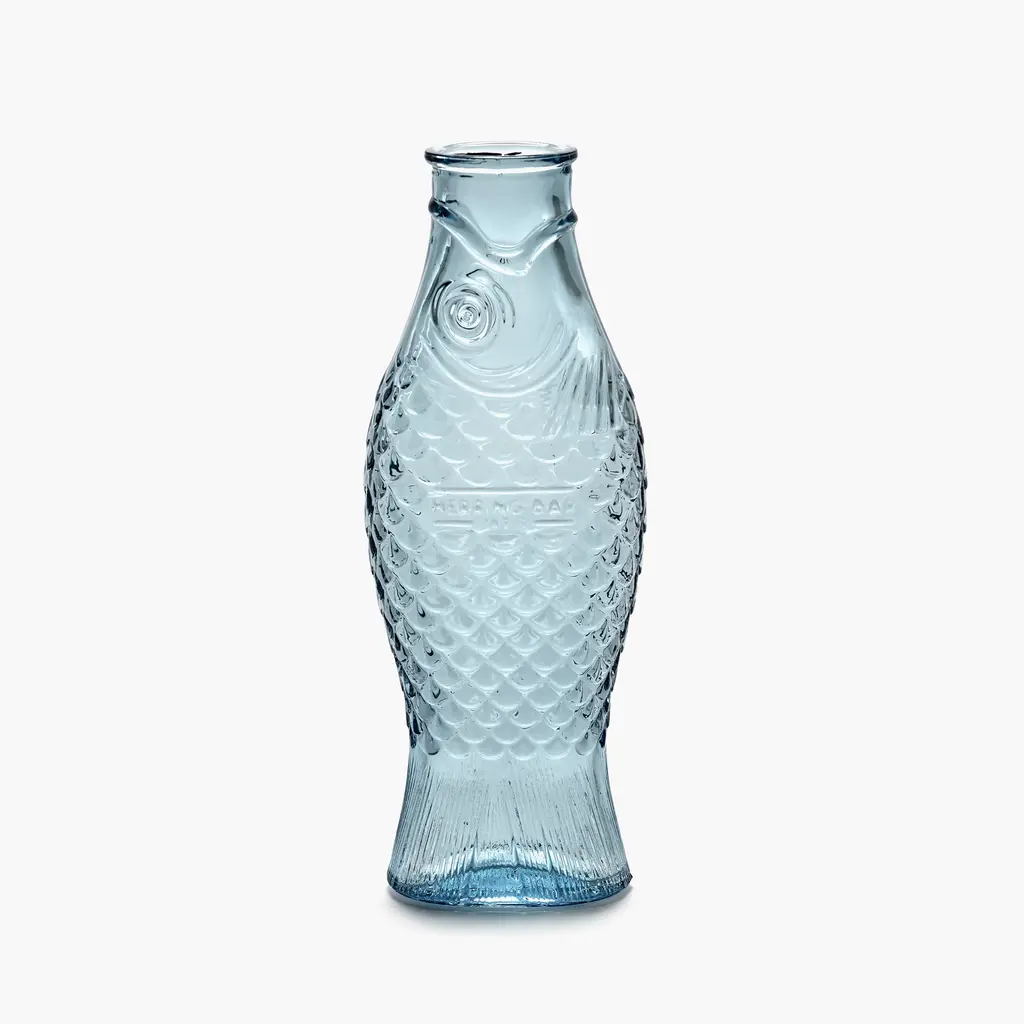 The perfect companion for convivial meals shared with family and friends, the Serax Fish&Fish Bottle transforms the humble water carafe into a striking design object. Award-winning designer Paola Navone created this series with her typical unconventional style that brings joy and vibrancy to everyday moments. The Fish&Fish bottles are shaped like a standing herring, with the tail acting as a solid base. Highly detailed, the carafe features intricate fish scale motifs that add a beautiful tactility to the design. The flat and softly curved shape of the bottle also makes it easier to hold while serving guests with water, juice or wine. Crafted with a special technique to ensure that the details are sharp and perfect, each bottle is solid-pressed from high-quality glass. Versions include clear glass as well as maritime-inspired hues of green and blue. The Serax Fish&Fish Bottle has a capacity of 28.74 fl oz and suits both daily use and special occasions. Complement the carafe with the other Fish&Fish glassware from the same collection.