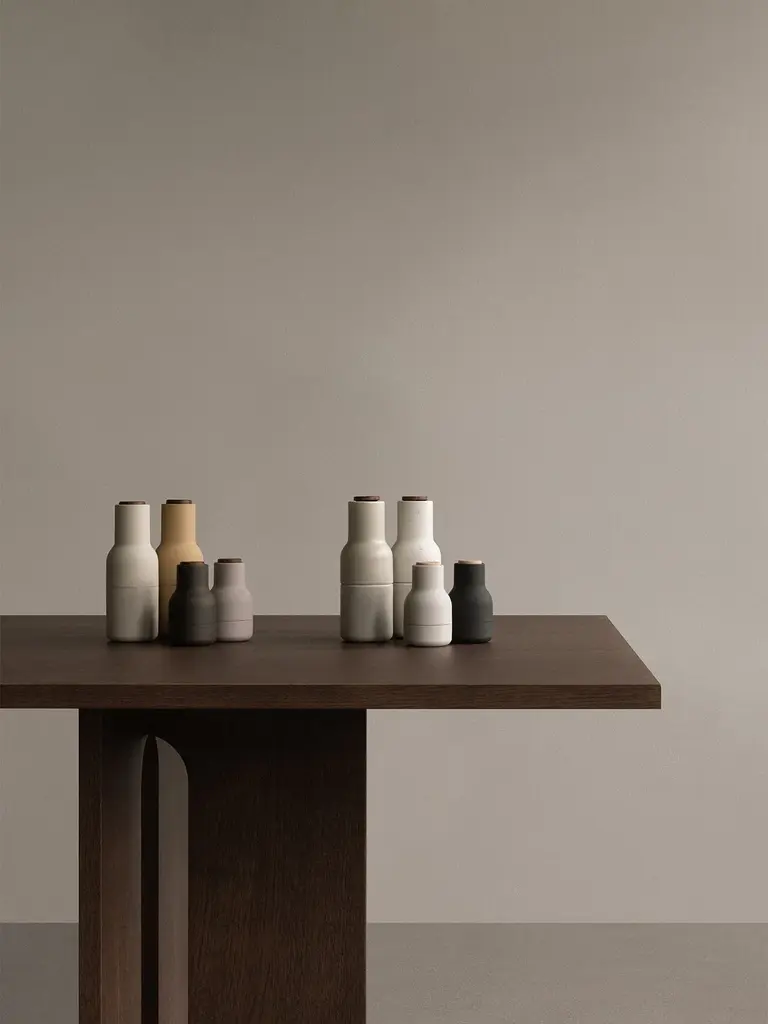 The unique, inverted design of the Bottle Grinders ensures that salt, pepper, pumpkin seeds, dried blueberries, walnuts or whatever you fill them with - only sprinkle out when you grind, leaving no trace on the table or in the kitchen. The rubber surfaces are also easy to grip and to clean.