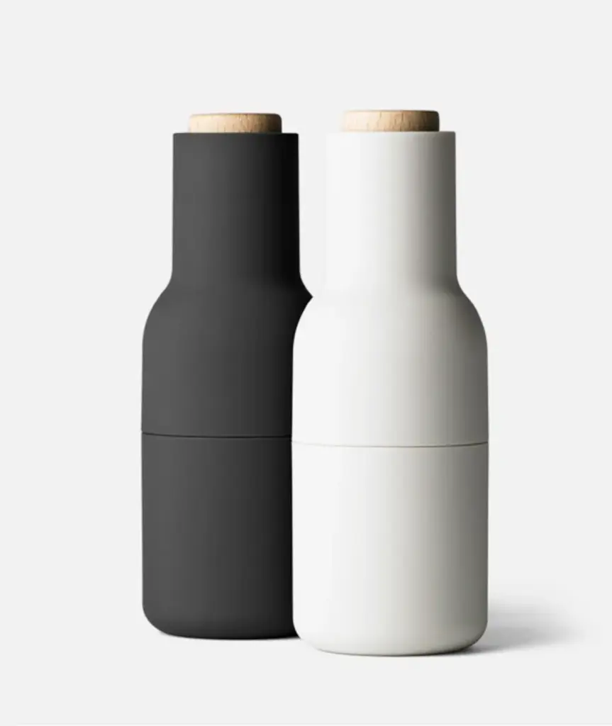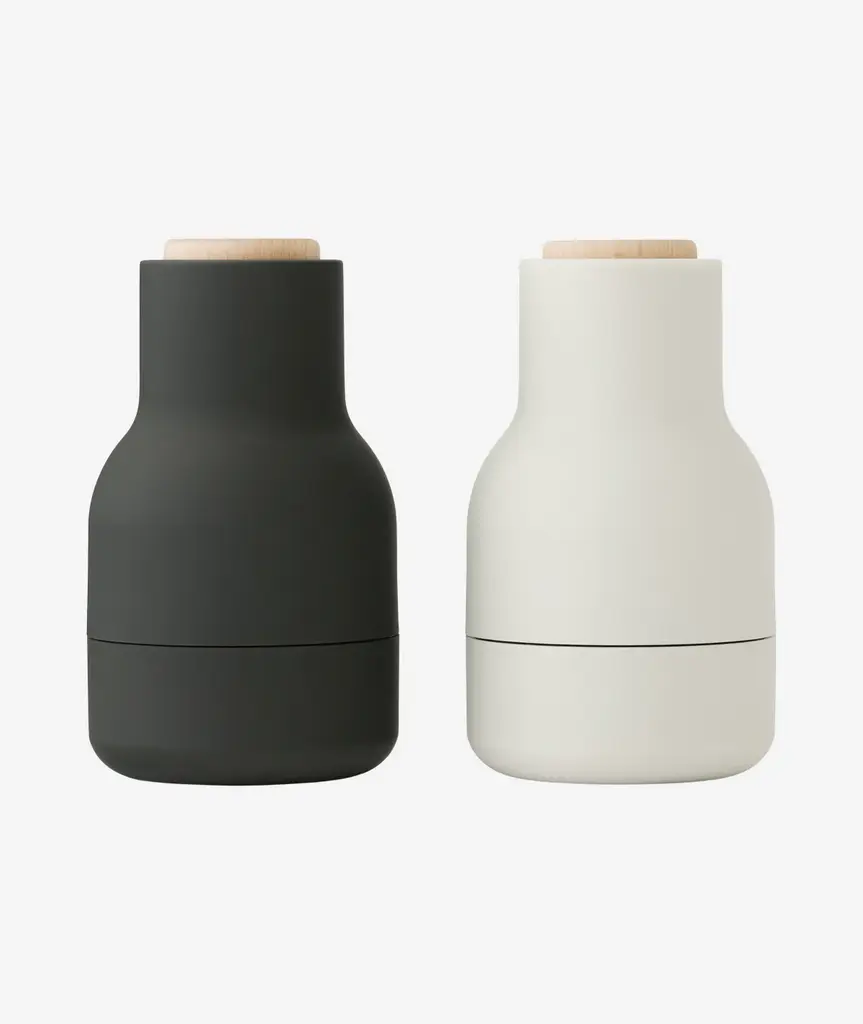 The unique, inverted design of the Bottle Grinders ensures that salt, pepper, pumpkin seeds, dried blueberries, walnuts or whatever you fill them with - only sprinkle out when you grind, leaving no trace on the table or in the kitchen. The rubber surfaces are also easy to grip and to clean.