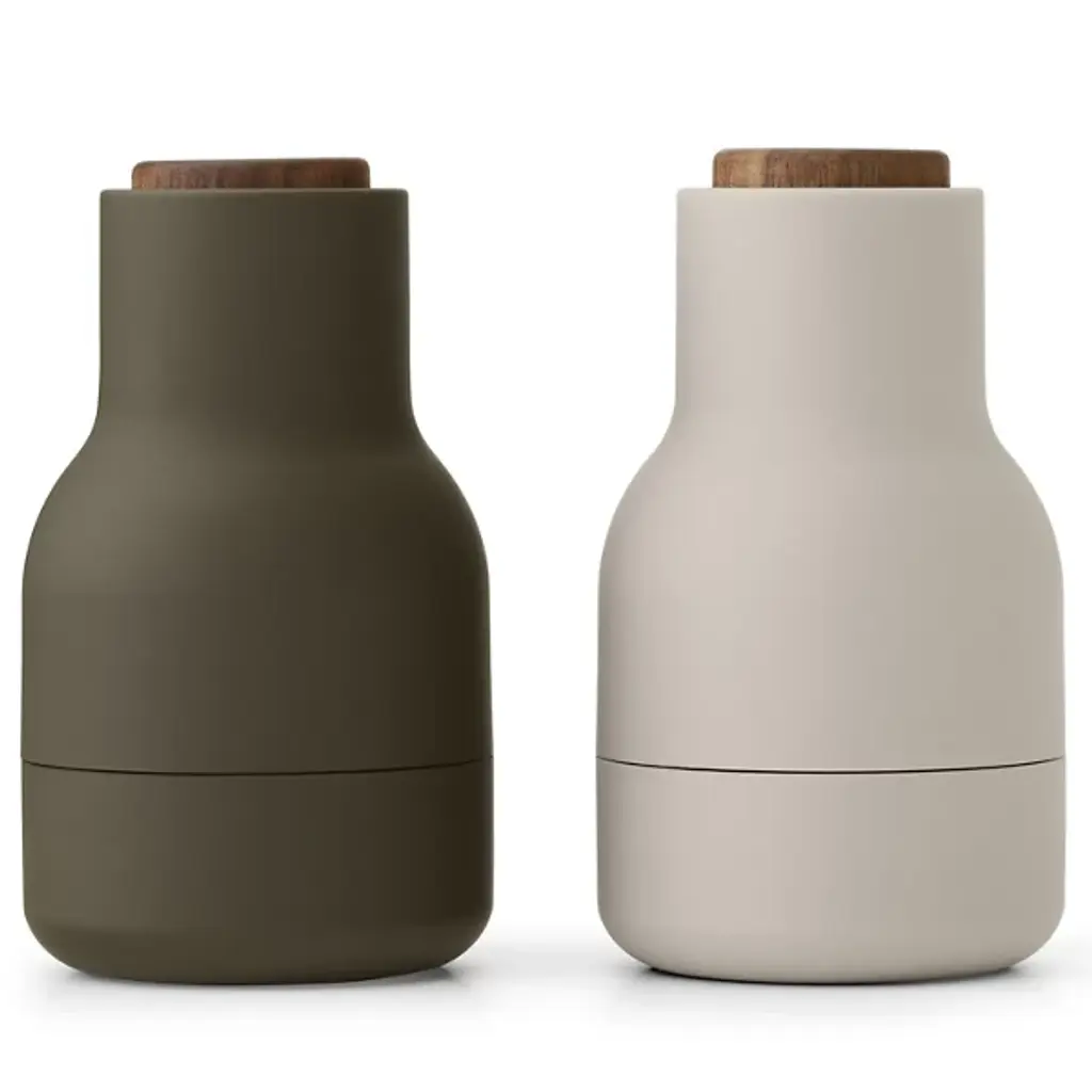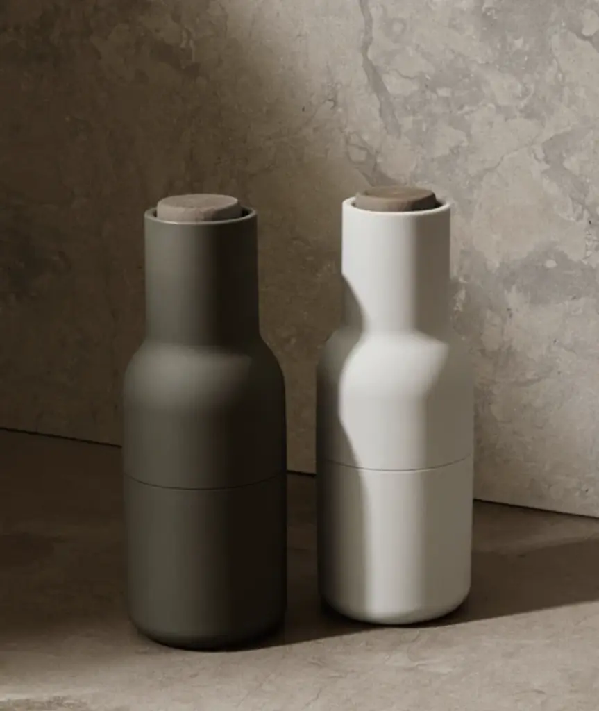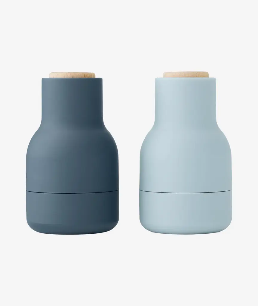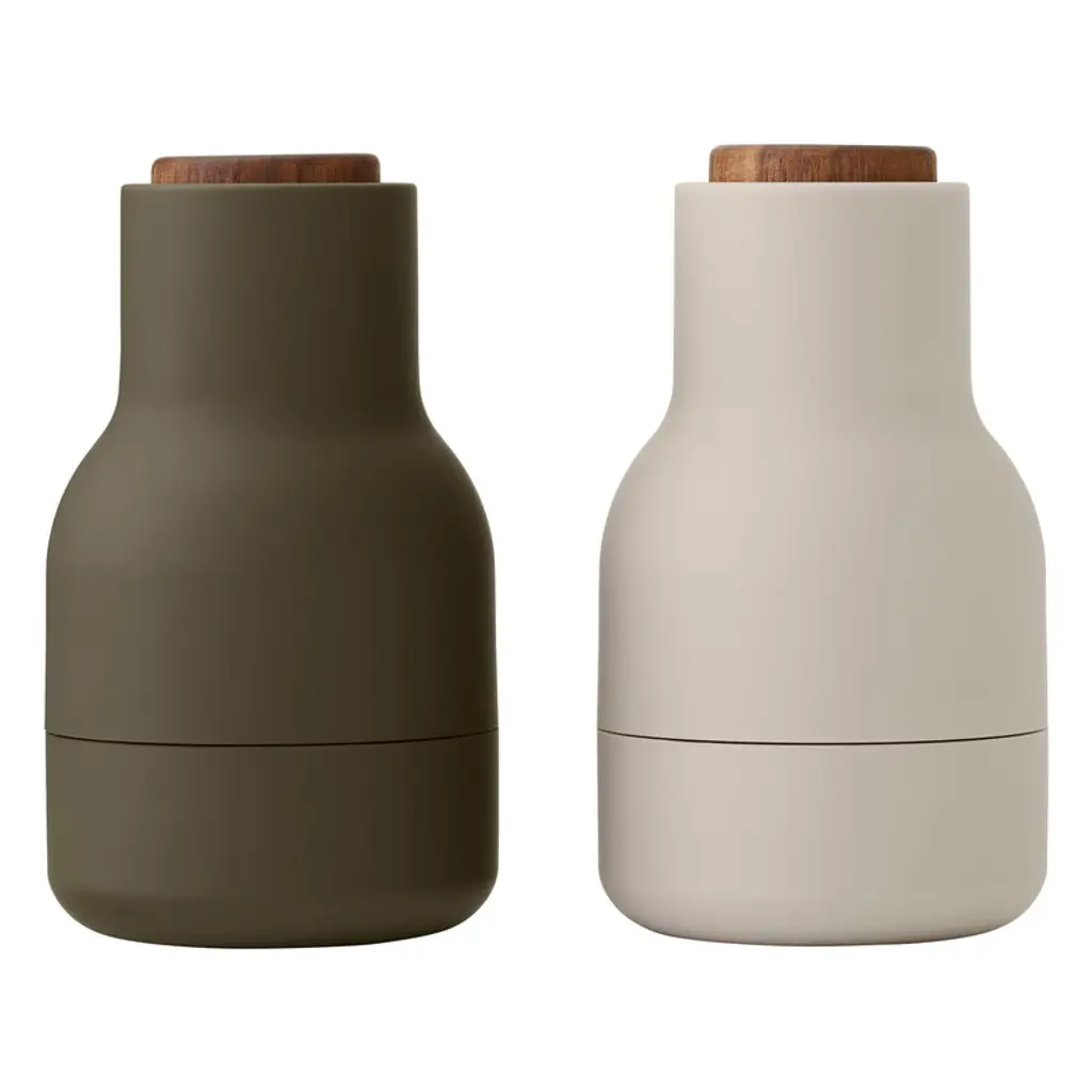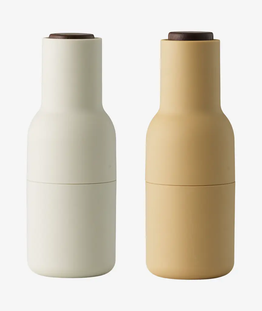 The unique, inverted design of the Bottle Grinders ensures that salt, pepper, pumpkin seeds, dried blueberries, walnuts or whatever you fill them with - only sprinkle out when you grind, leaving no trace on the table or in the kitchen. The rubber surfaces are also easy to grip and to clean.