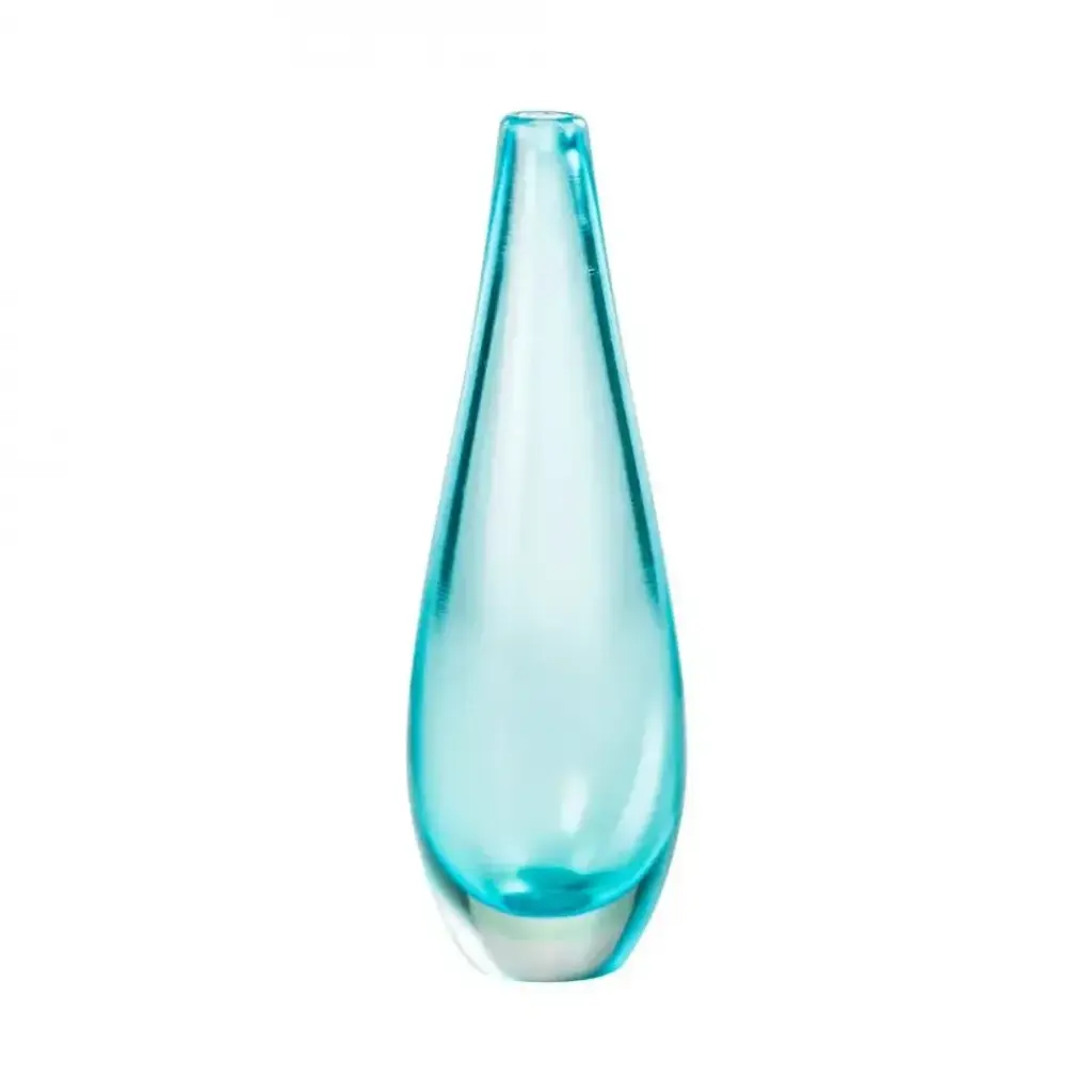 Hand-blown in the Czech Republic. By Sklo. The Bottle Vessels are exquisite objet d'art. Each neck is double-dipped to create a graduation of color from light to dark, while the bottoms have a slight indent detail for added interest. Broken hot from the glass blower's pipe, the mouth of each piece is truly unique. Add a splash of color with a single vessel, or create a stunning focal point by grouping several colors together.