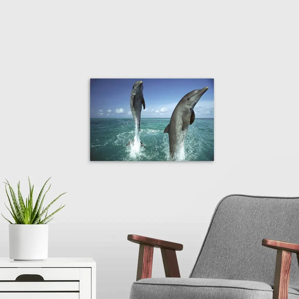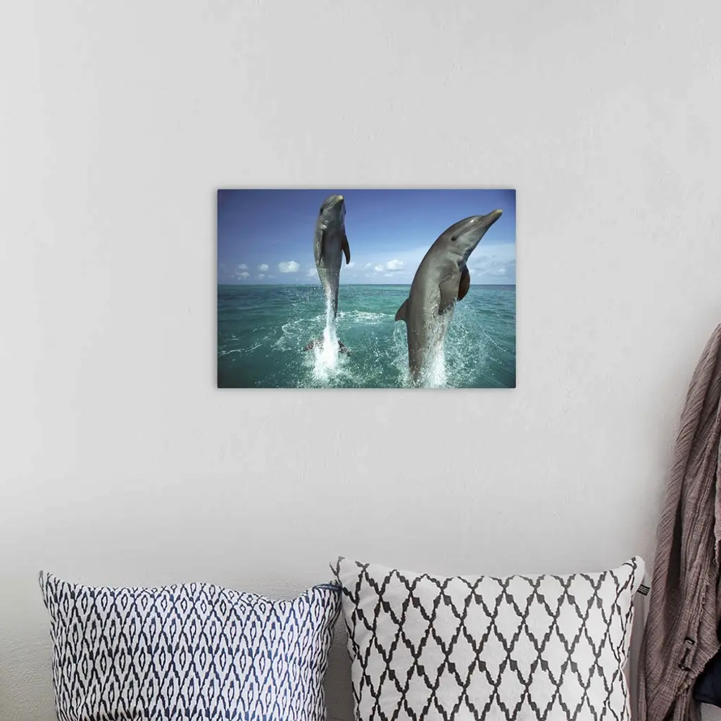 Bottlenose Dolphin Pair Leaping From Water, Caribbean