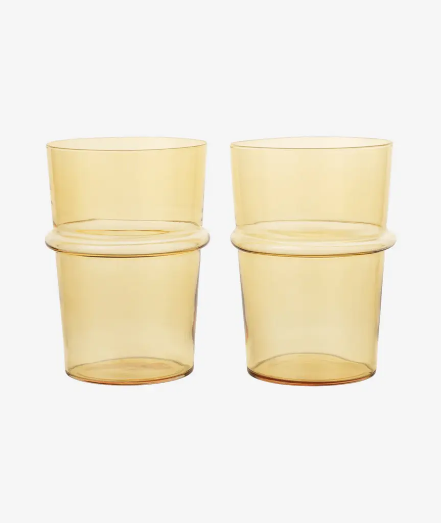 The Boya Tall Glasses draw inspiration from buoys and ancient Mediterranean glassware. Named after the Spanish word for ‘buoy,’ their playful shape adds charm to any setting. Sold as a set of two, each mouth-blown solid-colored glass carries a unique artisanal character. Their warm, vibrant hues evoke the spirit of summer, while their stackable design ensures practicality and easy storage.