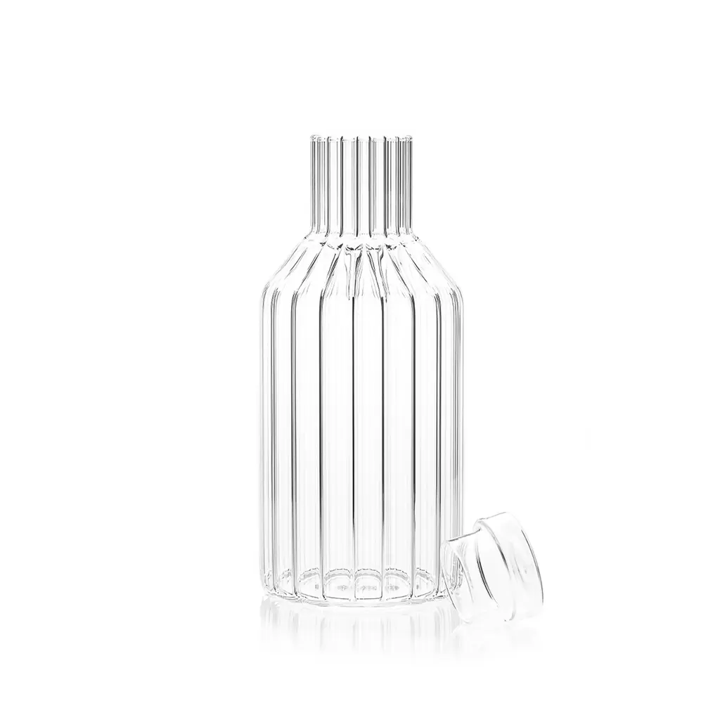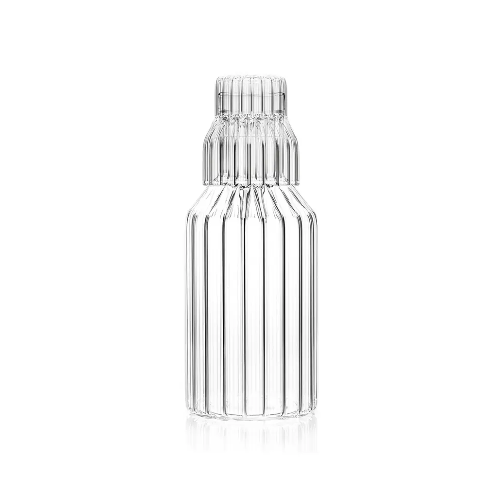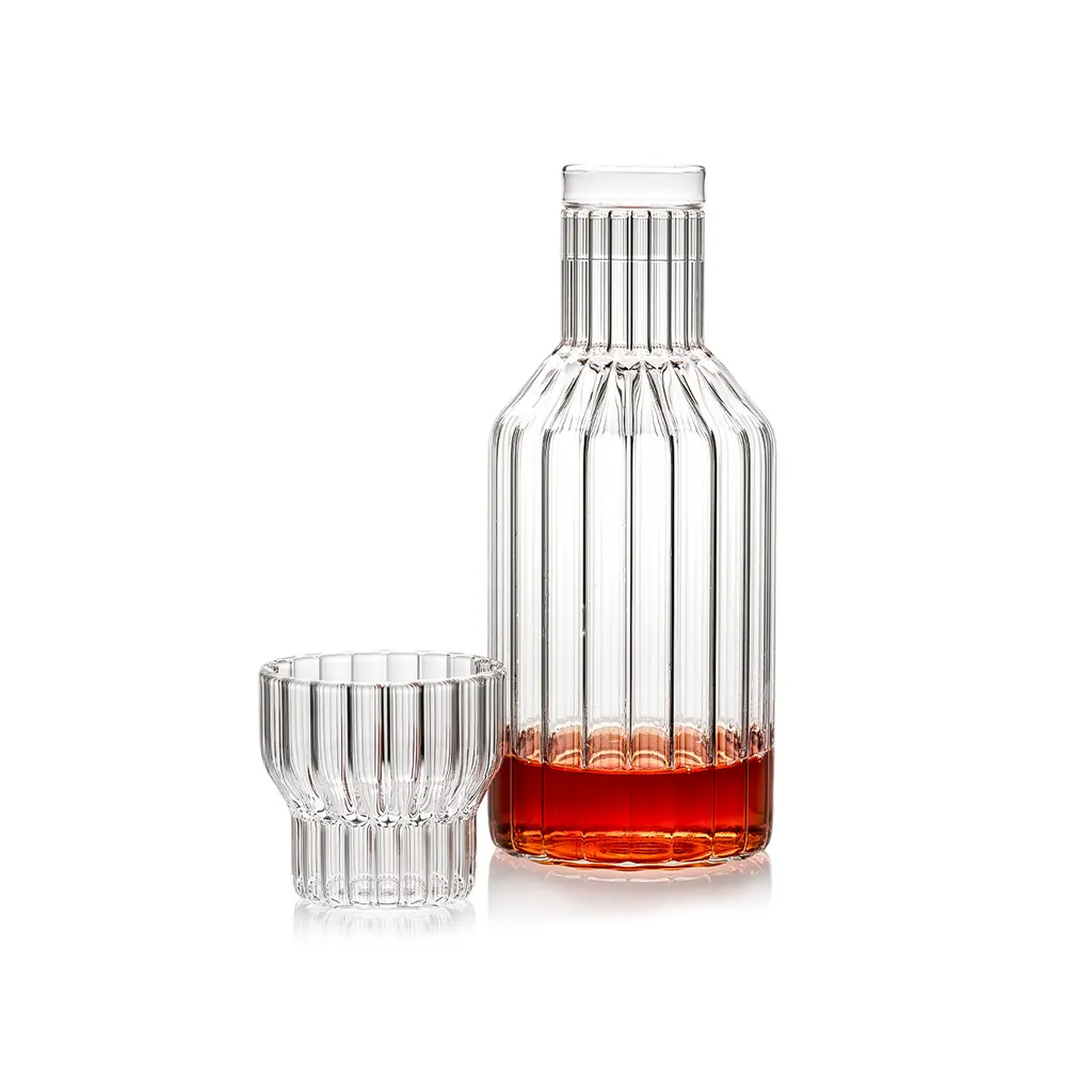 Bring contemporary design into your bedroom with the Boyd Beside Carafe with Small Glass. Made by fferrone design, this set explores the relationship between strong forms and elegant detailing. As a result, the decanter and glass boast a robust silhouette complemented by delicate fluting on the interior of the glass. Entirely handmade without the use of molds, this set is crafted by master glassblowers in the Czech Republic. The carafe has a capacity of 39 fl oz, while the small glass can hold up to 8.5 fl oz of water or spirits. Designed with both style and function in mind, the Boyd Small Glass fits over the top of the decanter perfectly. Discover the rest of the Boyd collection in our shop.