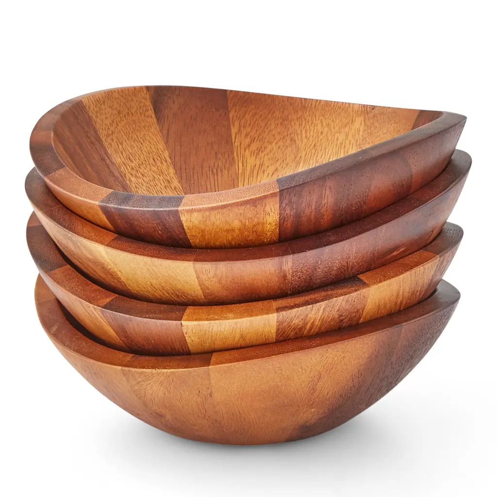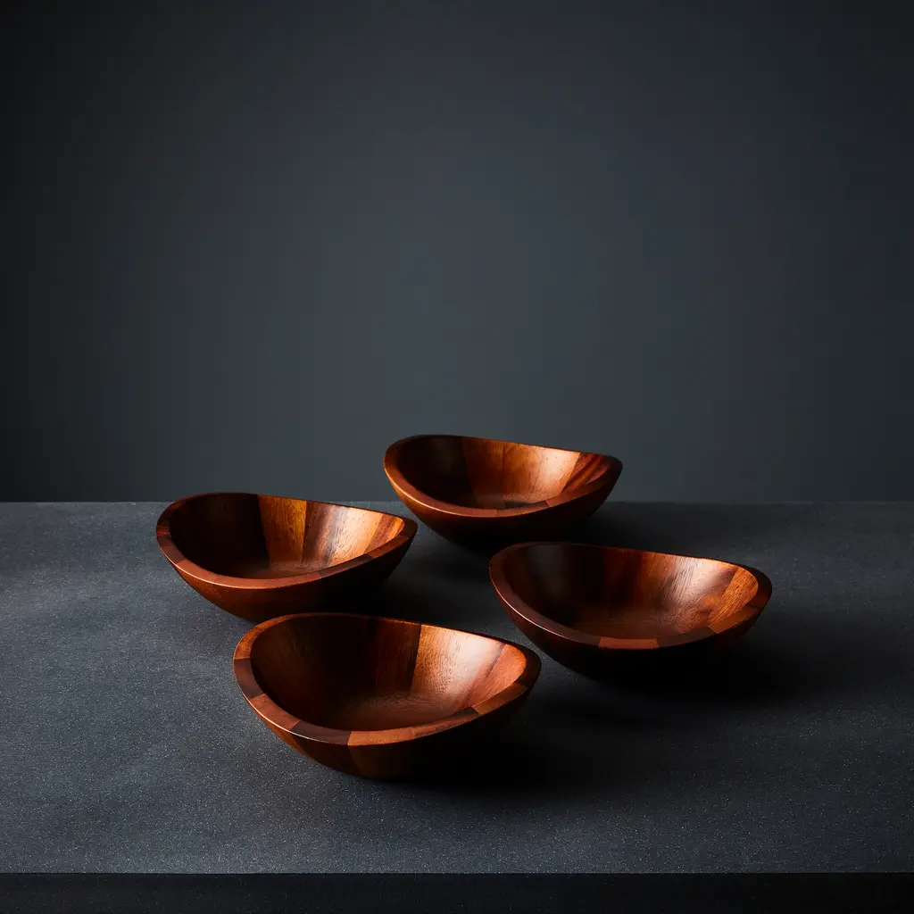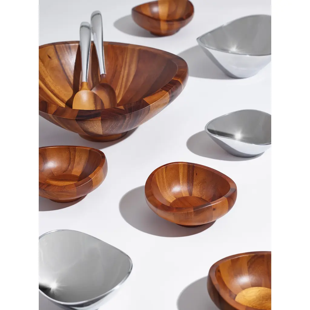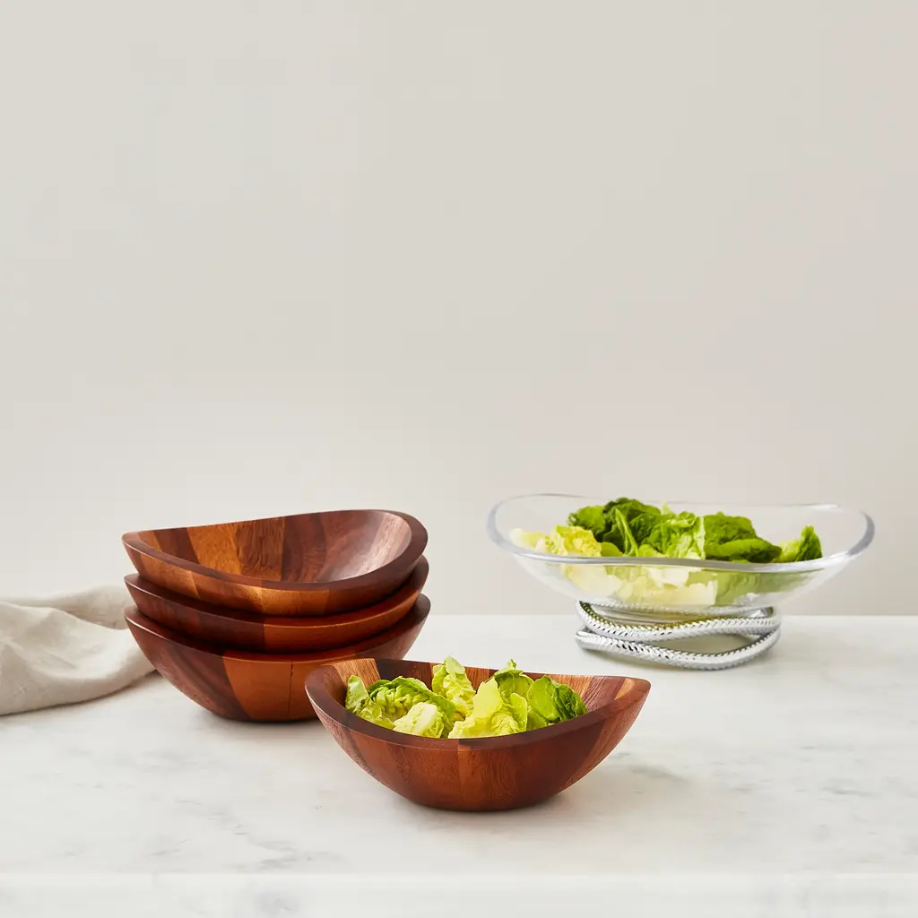Dramatic wood grain detail pairs with a classic silhouette in this organically intriguing set of salad bowls.