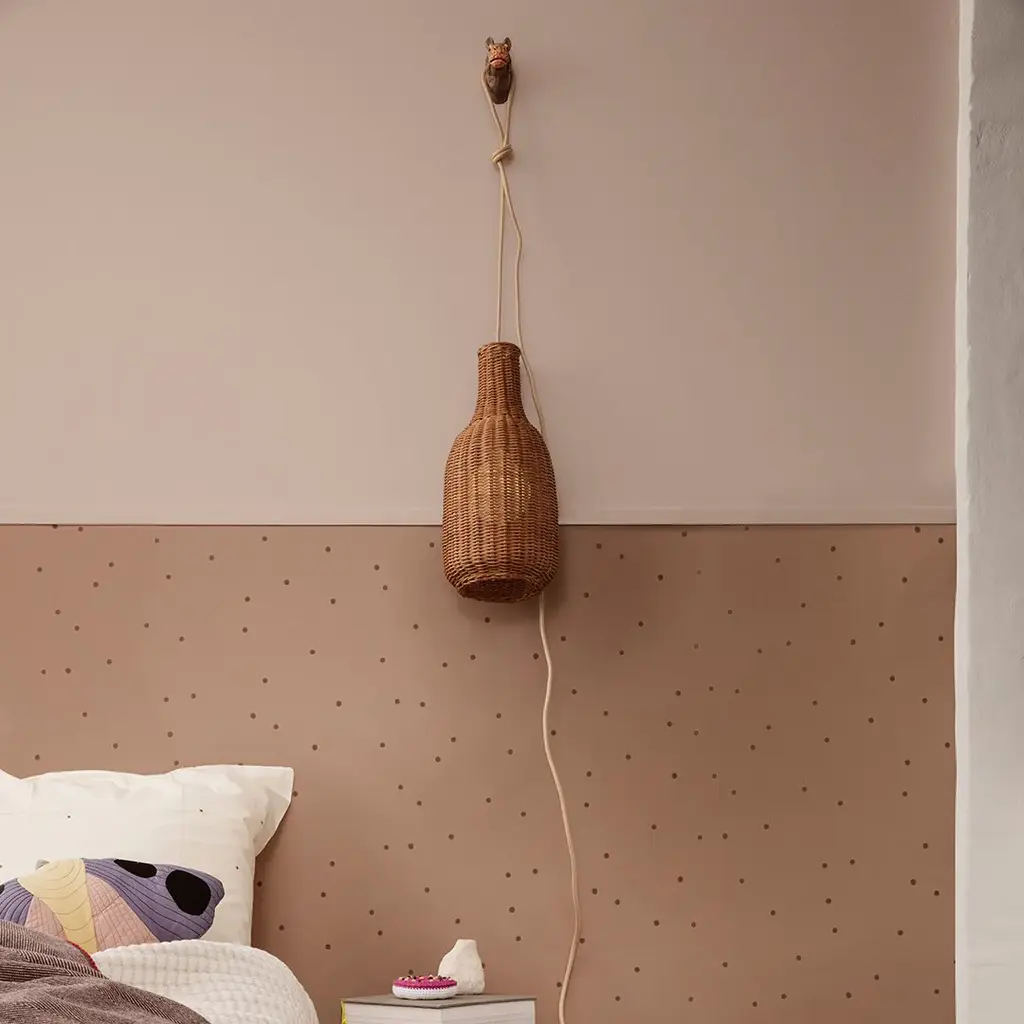 This slim lampshade is braided by hand from rattan and will provide a lovely and natural light source in a room. Regardless whether you hang a couple of them in a line above your dinner table or use one as a small reading light by your sofa, the lamp lets little glimpses of light through its natural shade, while the bottom hole gives a more directed downward light. Cord and canopy not included.