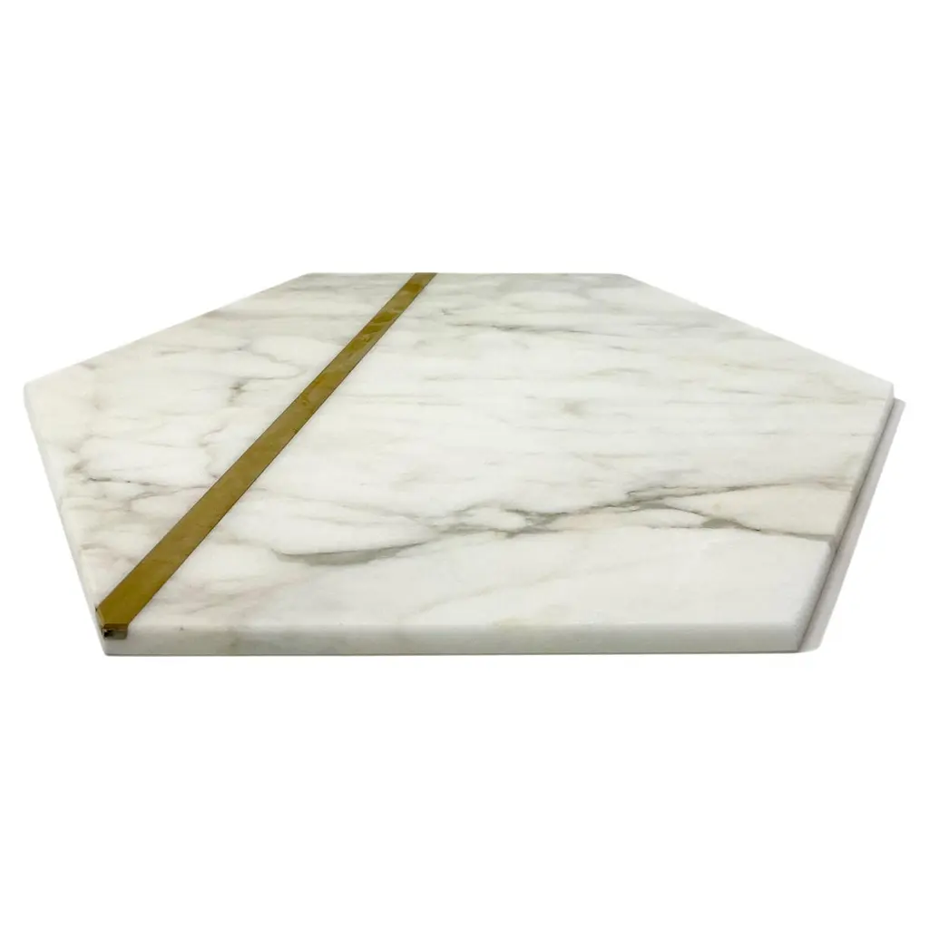 Brass Underplate- 21st Century Calacatta Oro And Brass Hexagonal Underplate