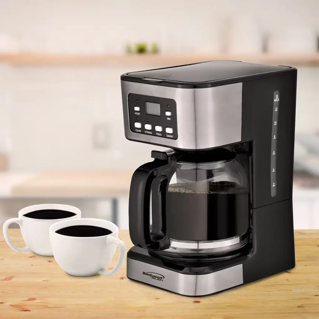 The Brentwood 12-Cup Digital Coffee Maker in Black brews the perfect cup every time. It features a strong brew setting, programmable timer, pause and serve function, auto shut-off, and a cleaning function for convenience. The warming plate keeps your coffee hot when not brewing, and the removable filter basket is easy to clean, saving you money on disposable filters. With a 12-cup capacity, it's ideal for both everyday use and brewing extra coffee for guests!