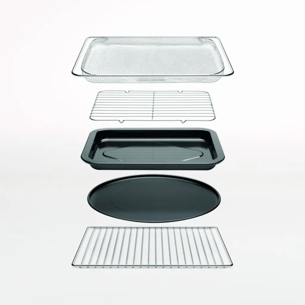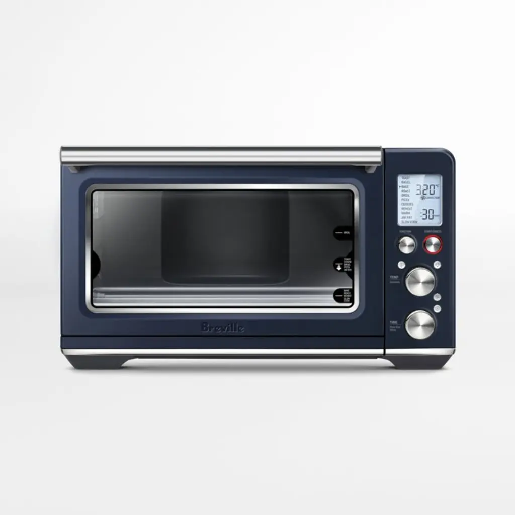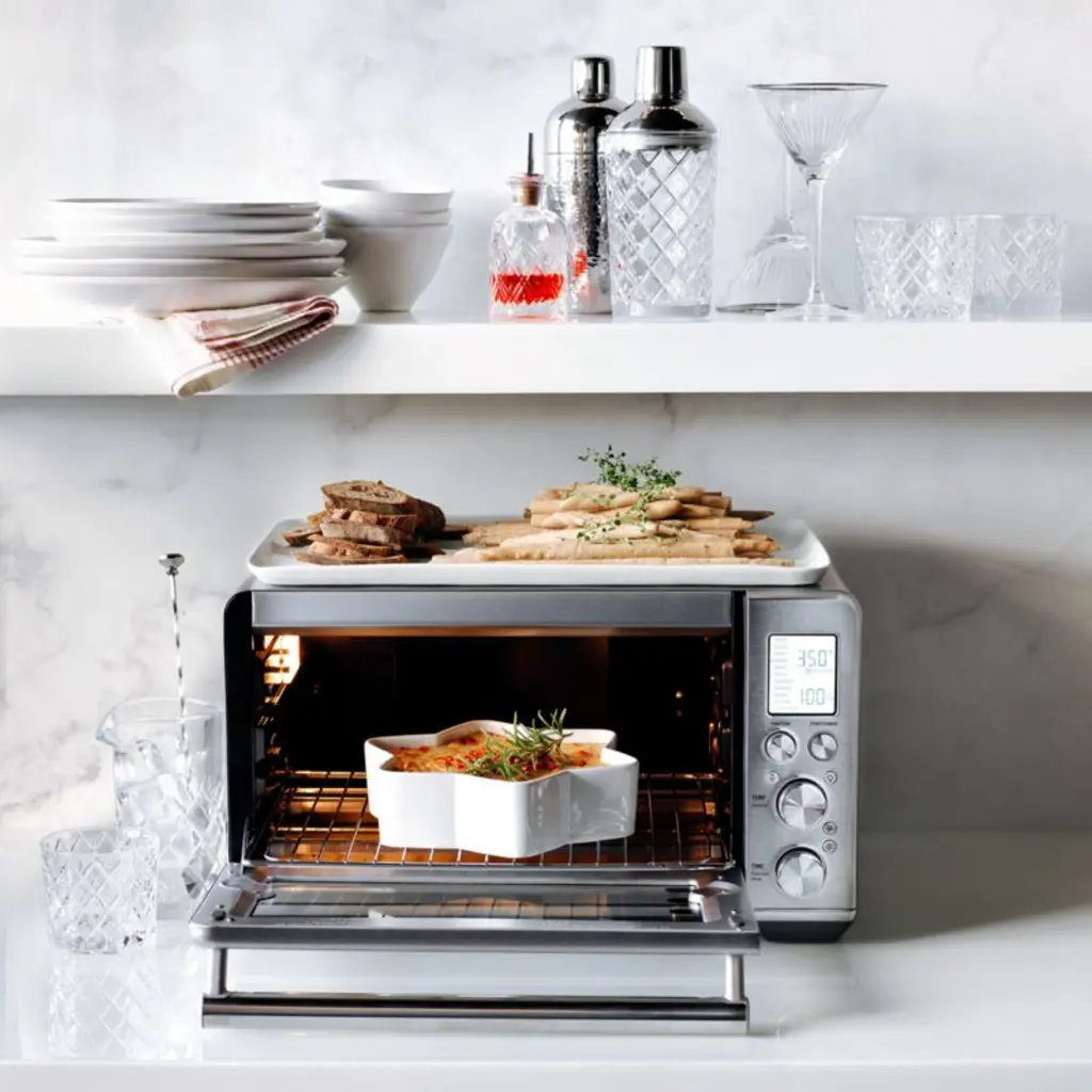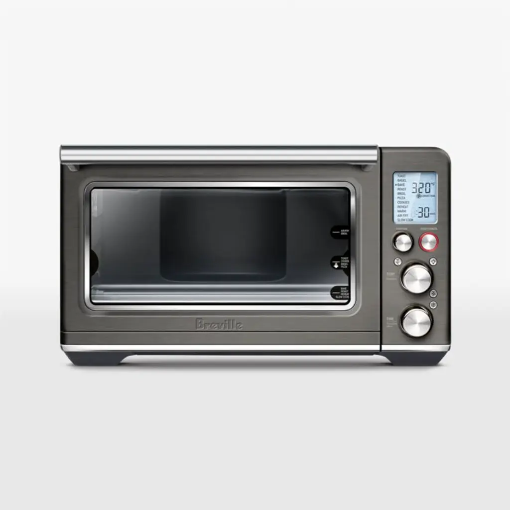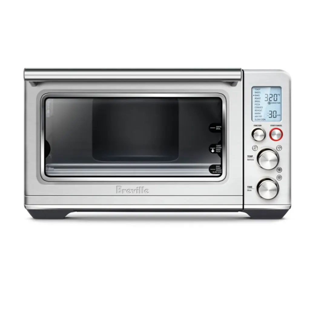 Enjoy guilt-free french fries, chicken wings as well as pizza, baked cookies and more with this stainless steel multi-tasking air fryer from Breville. Higher temperatures combined with maximized airflow deliver delicious crispy air-fried foods. Smart algorithms and sensitive temperature controls eliminate cold spots for precise and even cooking. Take the guesswork out of meal prep by choosing one of 11 cooking functions for toast, bagel, broil, bake, roast, warm, pizza, air fry, reheat, cookies and slow cook. Reducing cooking times up to 30%, this appliance saves time and opens up possibilities.Need help choosing? View our Breville Smart Ovens comparison chart.