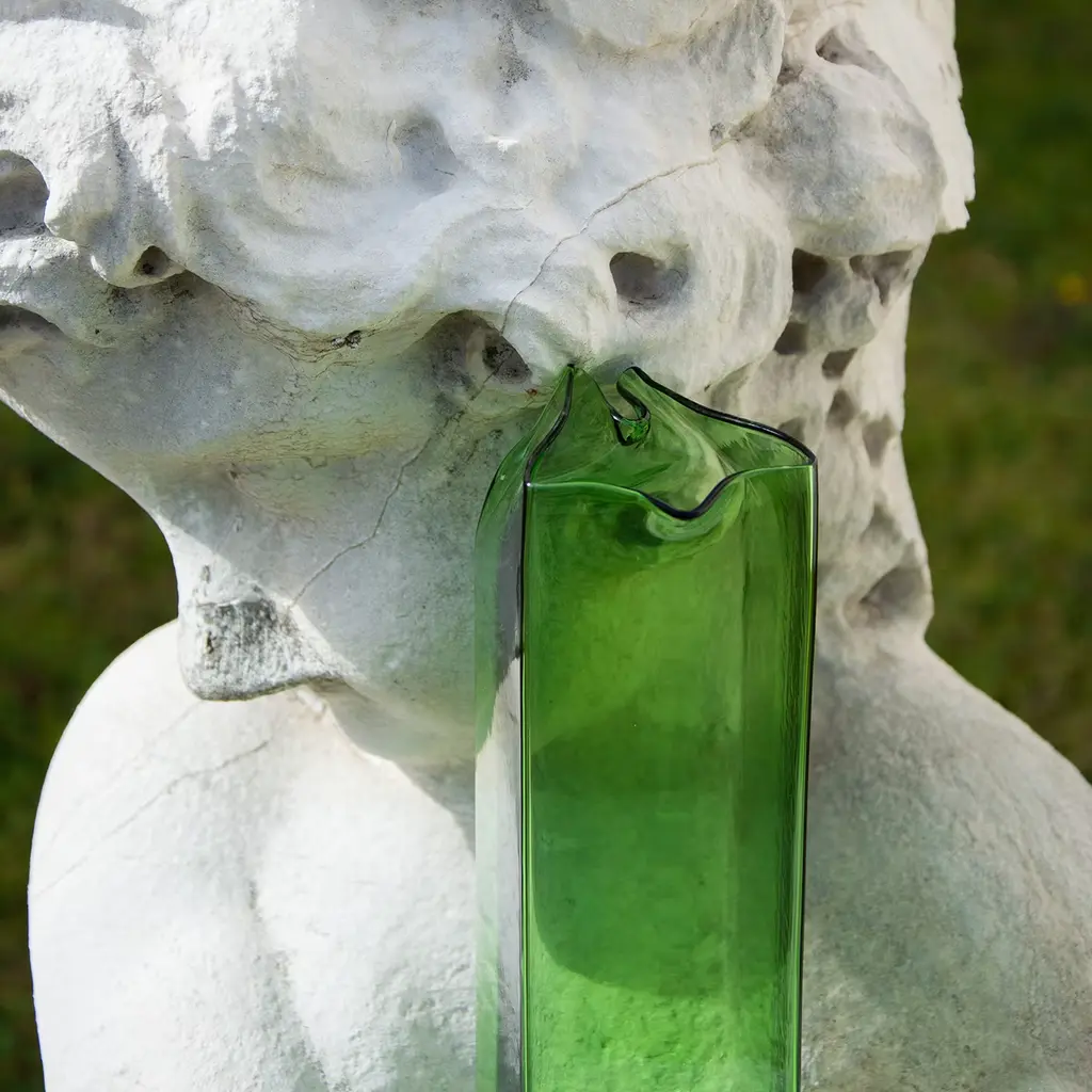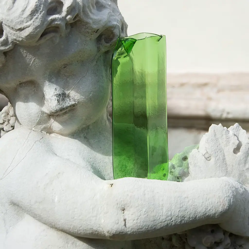 Inspired by the modern tetra-pack milk cartons, ‘Bricco’ is the minimalistic expression of an Italian daily gathering. Handmade in Italy by master glass blowers, this beautiful colored glass carafe brings a tone of class to any living space. Welcome guests with this impactful design, where glass curves and linear shapes play together with light to brighten this unique fine craft.