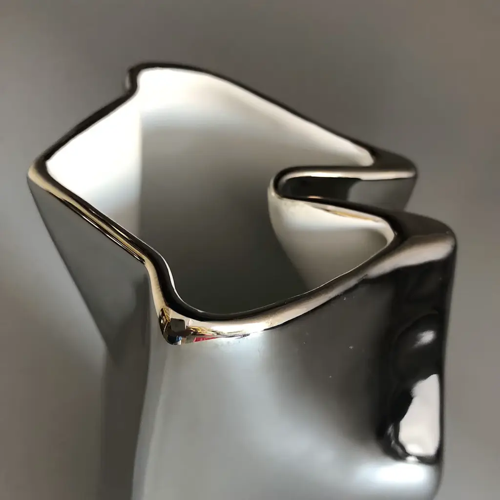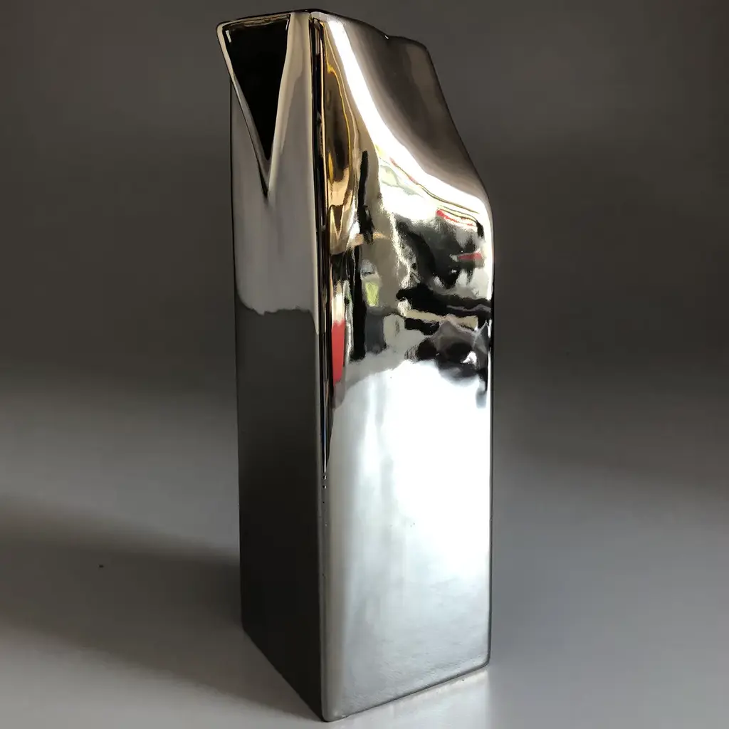 Nostalgia goes chic with the Bricco Palladium Terracotta Carafe. Inspired by the first tetra pack milk cartons, the carafe is safe for serving both hot and cold beverages. In white terracotta, the carafe is coated in white enamel and a glistening palladium tone before the last firing. Make it yours with a short personalized sentence on the bottom.