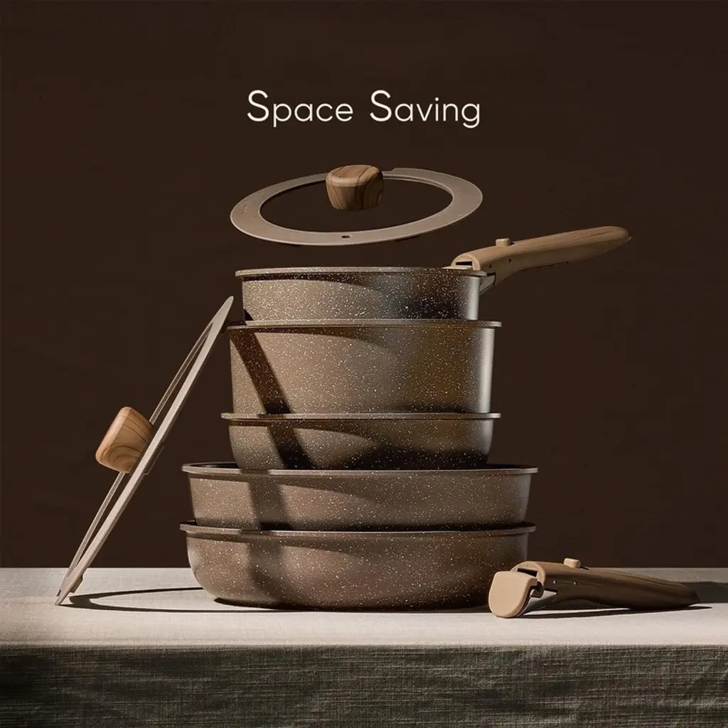Brinjoy 17-piece Nonstick Cookware Set With Removable Handles - Oven & Dishwasher Safe, Induction Compatible, Brown Rv Kitchen Collection