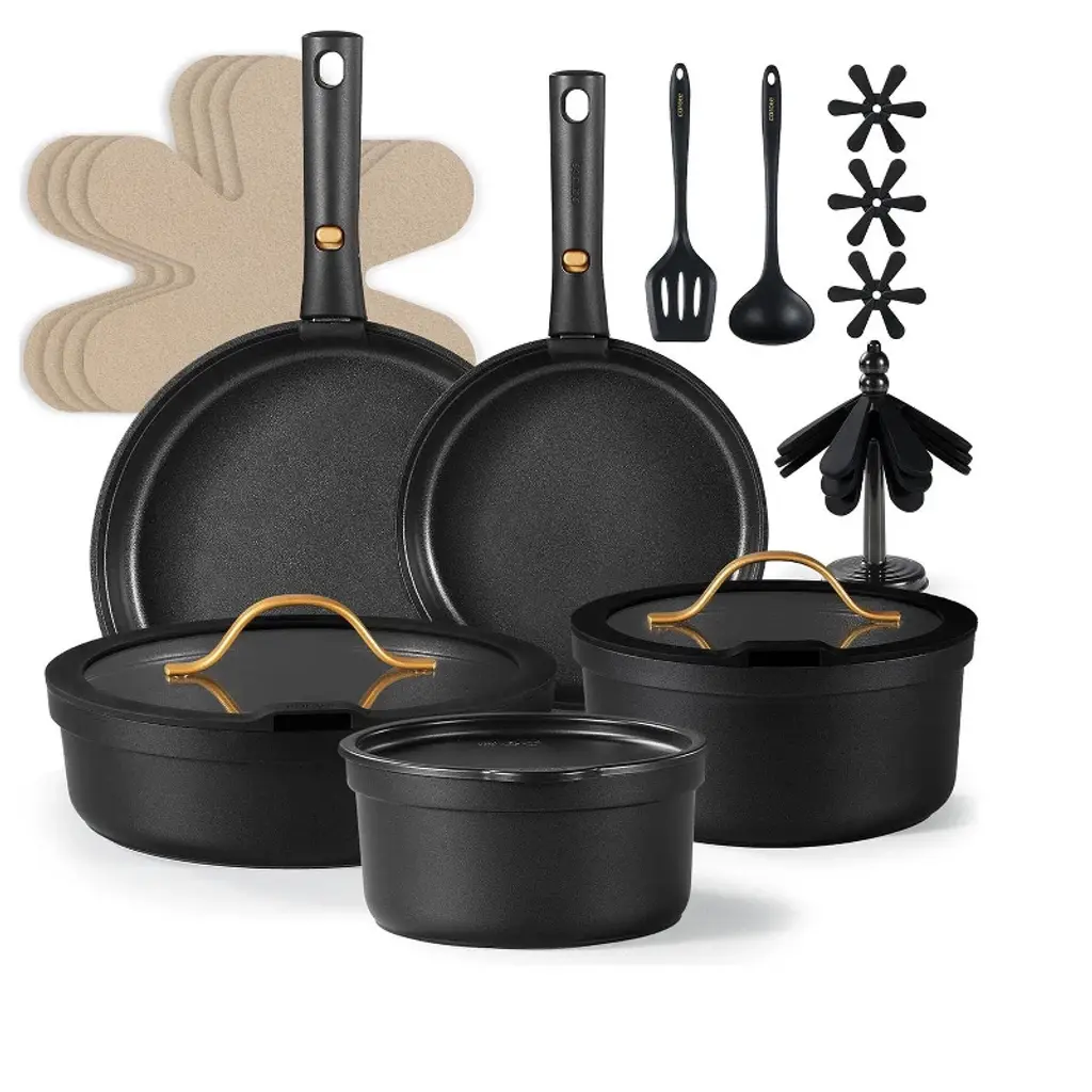 Brinjoy 20-piece Non-stick Cookware Set With Removable Handles, Cookware Set, Induction Cooktop Rv Kitchen Cooking Set, Dishwasher/oven Safe (Black)