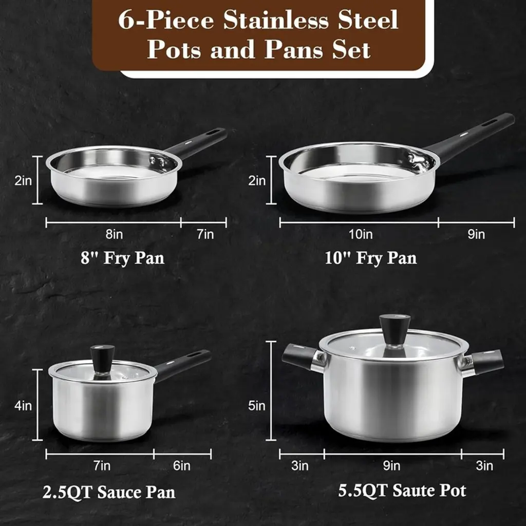 Brinjoy 6-piece Stainless Steel Cookware Set With Glass Lids - Non-toxic, Induction Compatible, Dishwasher Safe