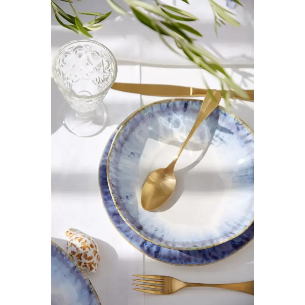 Distinctive coastal-inspired design The warm breeze that blows from the east and cascades along the Algarve coast with fruity aromas and the fresh flavors of Ria Formosa was the inspiration for this collection. The blended white and blue glazes and organic shapes transport us to the intricate landscape of lagoons, canals, salt works, and sandy beaches stretching across deserted islands. This collection adds light to every gathering and turns any table into a memorable experience. Named after a small fishing village famous for its colorfully painted wooden houses, Costa Nova combines ancient European craft traditions, elegant design and quality to create fine stoneware pieces. Using the best natural resources in Portugal, Costa Nova pieces are known for their color and exceptional durability.