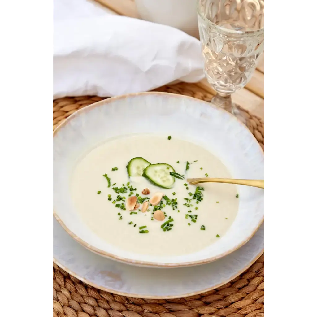 Distinctive coastal-inspired design The warm breeze that blows from the east and cascades along the Algarve coast with fruity aromas and the fresh flavors of Ria Formosa was the inspiration for this collection. The blended white and blue glazes and organic shapes transport us to the intricate landscape of lagoons, canals, salt works, and sandy beaches stretching across deserted islands. This collection adds light to every gathering and turns any table into a memorable experience. Named after a small fishing village famous for its colorfully painted wooden houses, Costa Nova combines ancient European craft traditions, elegant design and quality to create fine stoneware pieces. Using the best natural resources in Portugal, Costa Nova pieces are known for their color and exceptional durability.