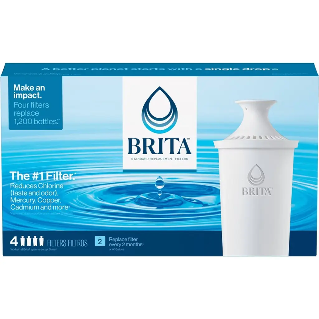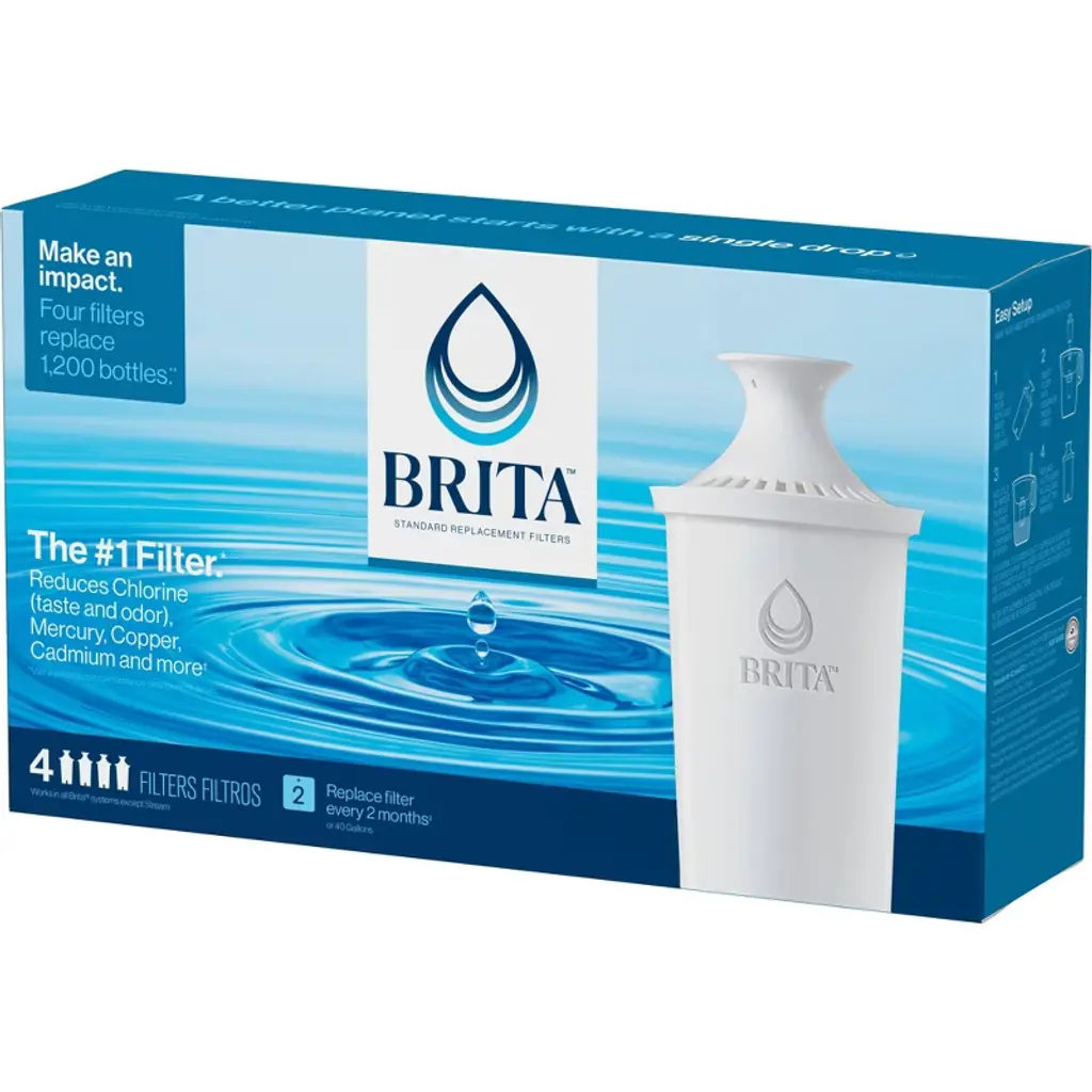 Drink healthier, great-tasting tap water with the Brita Standard Water Filter. This BPA-free Brita water purifier filter cuts the taste and odor of chlorine, plus it reduces copper, cadmium and mercury impurities using ion-exchange resin and activated carbon. Built-in mesh screens on this replacement water filter prevent black flecks in your water filter pitcher, leaving you with great-tasting, clear drinking water. You can replace up to 1,800 standard 16.9-oz. plastic water bottles a year with Brita, so you can stay hydrated, save money and reduce plastic waste. With no presoak required, these Brita filters are quick and easy to install in a Brita filter water pitcher or dispenser. One water filter replacement lasts up to two months or 40 gallons. Brita Standard Water Filters fit in all Brita systemsexcept Brita Streamincluding Brita water pitcher and water dispenser models. Get great taste, less waste and more savings from Brita. USAGE DIRECTIONS: Change your filter with just a few simple steps. Wash your hands before unwrapping the filter. Flush filter with cold water for 15 seconds. Insert filter into reservoir. Add cold tap water. Discard your first 3 pitchers/1 dispenser of filter water, or use this water for plants. It is normal for carbon dust to appear in your first fillings. Fill up your pitcher and enjoy great tasting water. Replace the water filter every 40 gallons or 2 months. Substances reduced may not be in all users' water. CAUTION STATEMENTS: IMPORTANT NOTICE: Please read the Performance Data Sheet enclosed in the box for complete details. The Brita Pitcher Filter is not intended to purify water. Do not use with water that is microbiologically unsafe or of unknown quality without adequate disinfection before or after the system. Individuals requiring water of special microbiological purity should follow the advice of their doctor or local health officials regarding the use and consumption of their tap water and Brita filtered water.