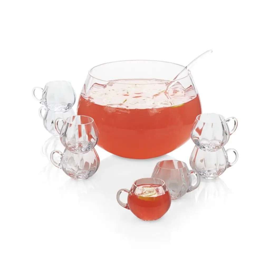 Old-school entertaining with a new-school optic design. This elegant glass cup has a dainty handle and faceted sides that swirl to create the rounded shape. Matching punch bowl and glass ladle sold separately.